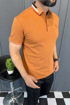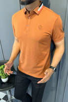 Turbo Patchwork Gradient Rib Men's Polo Shirt In Rust