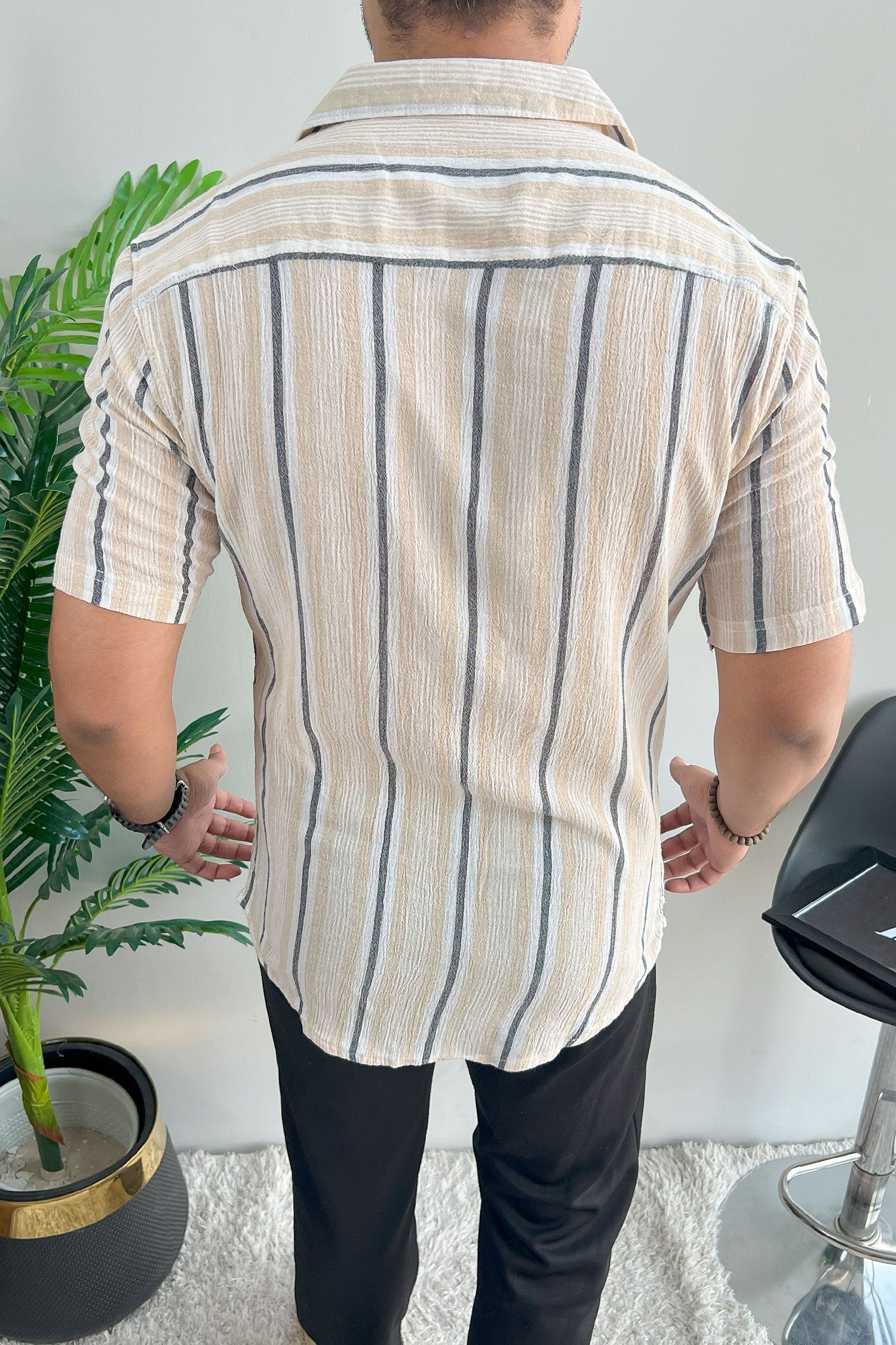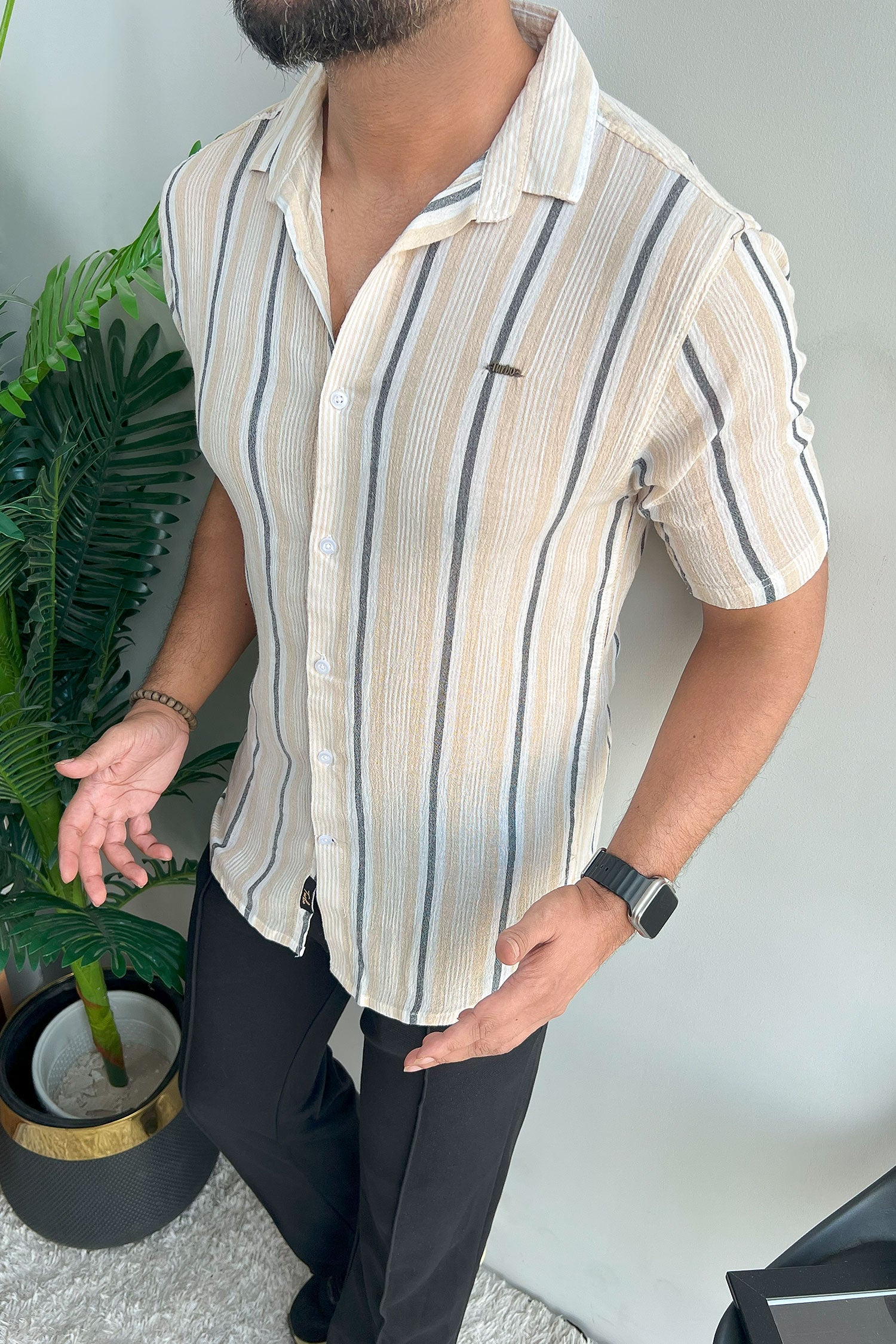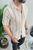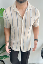 Turbo Patterned Lining Style Casual Shirt In Beige