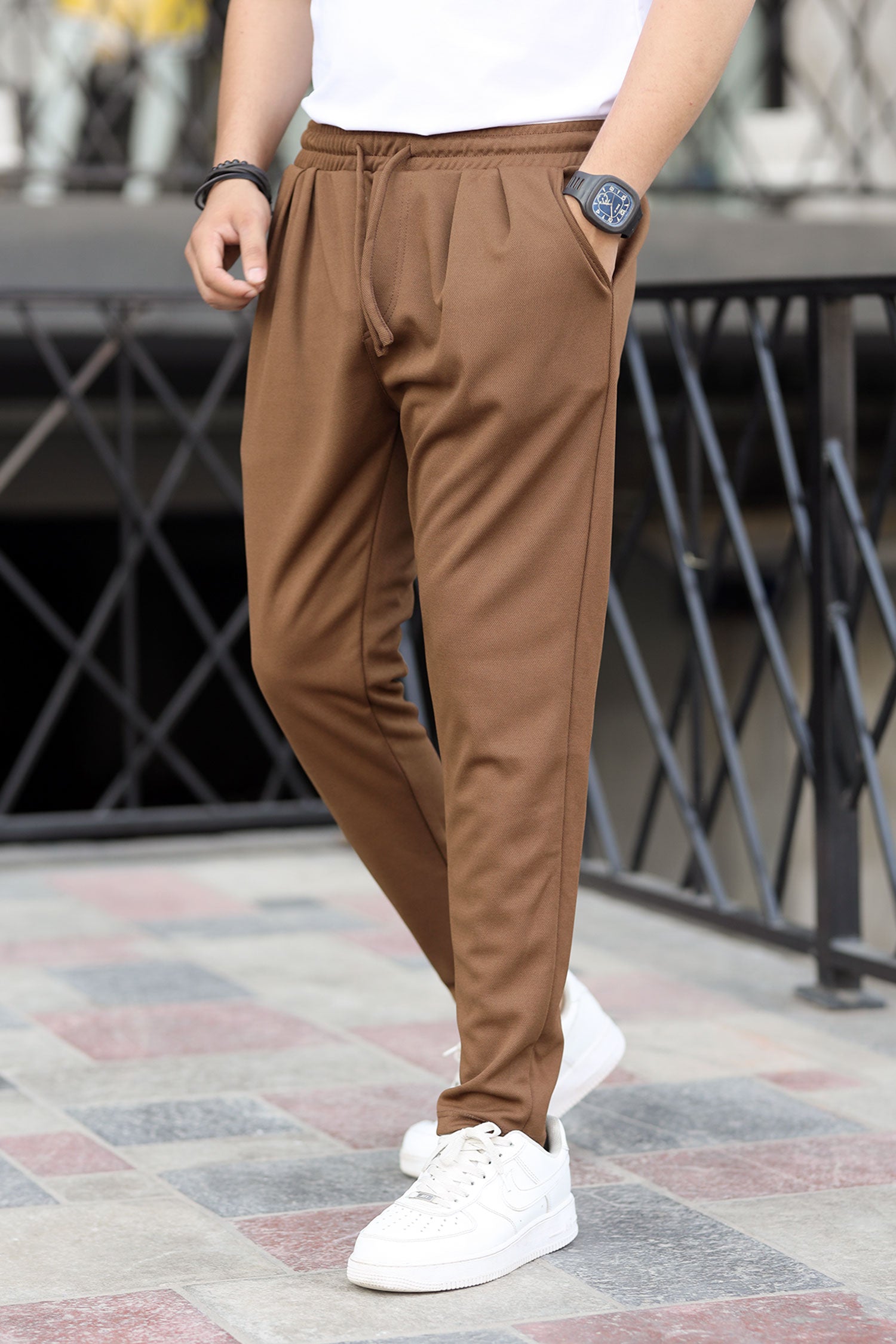 Turbo Pique Textured Double Plate SlimFit Trouser In Brown
