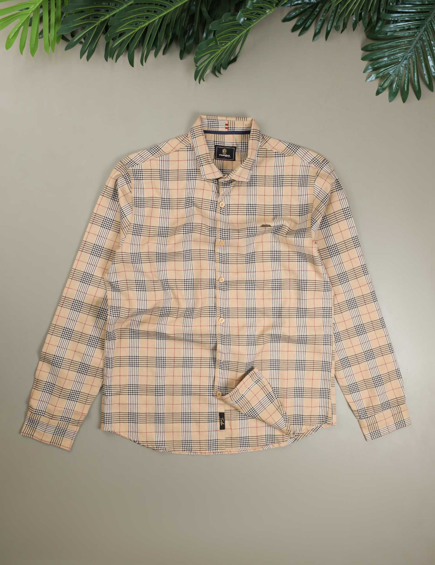 Turbo Plaid Pattern Creation Long Sleeve Cotton Casual Shirt In Light Skin
