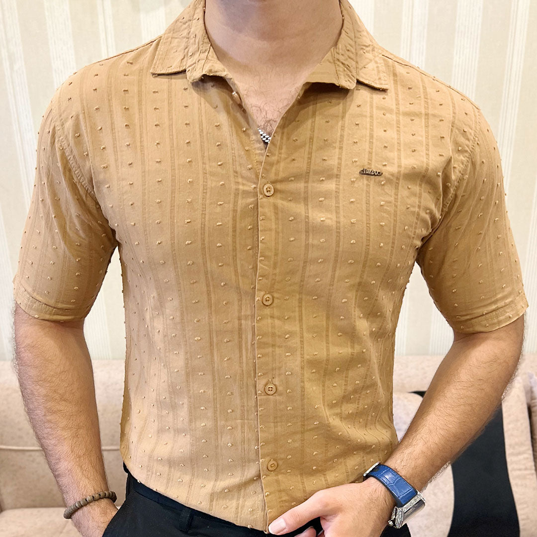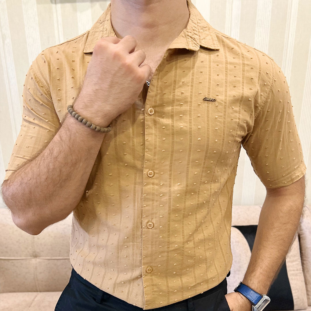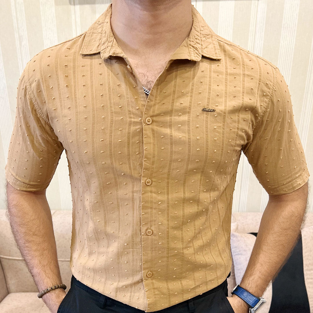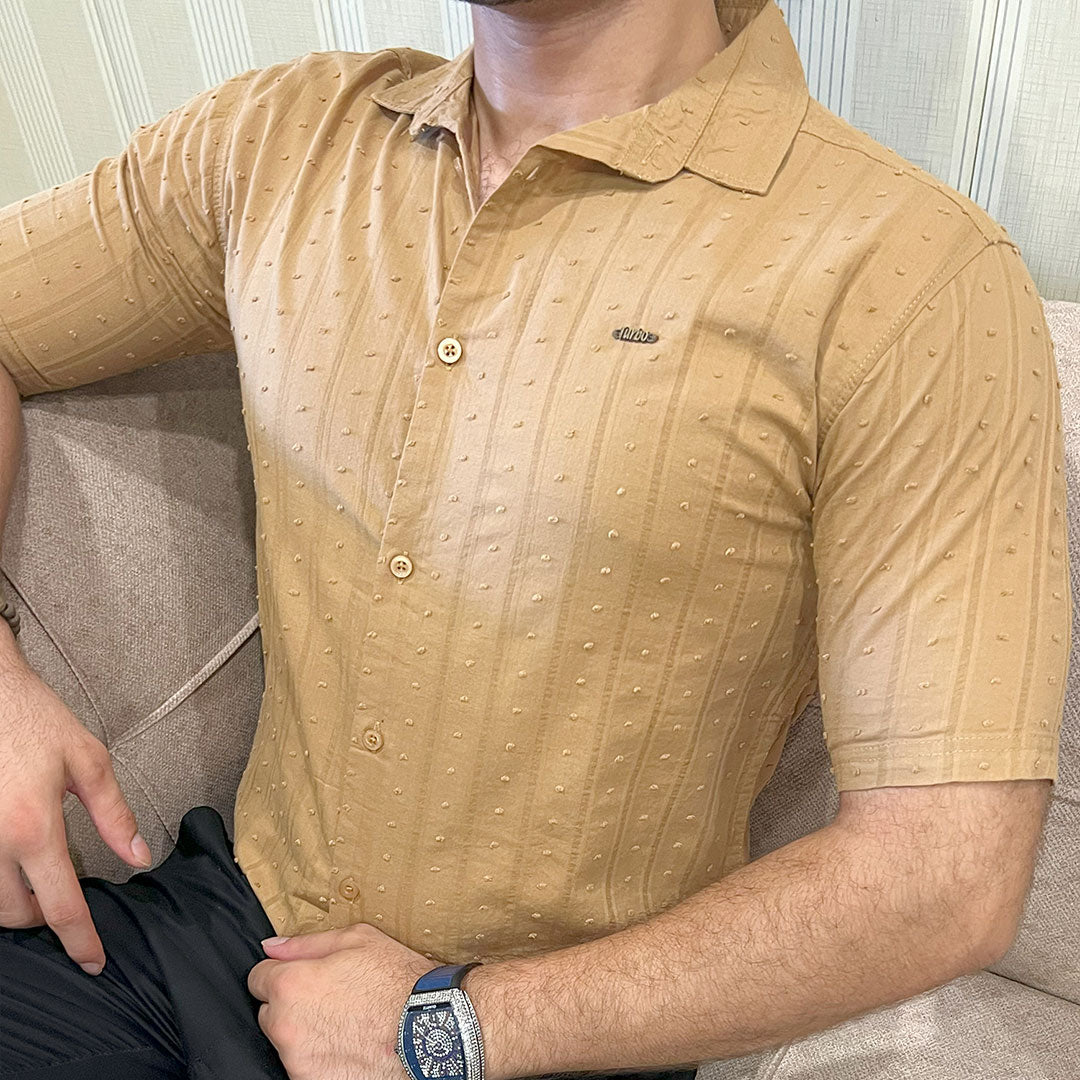 Turbo Puff Clasic Thread Casual Shirt In Camel
