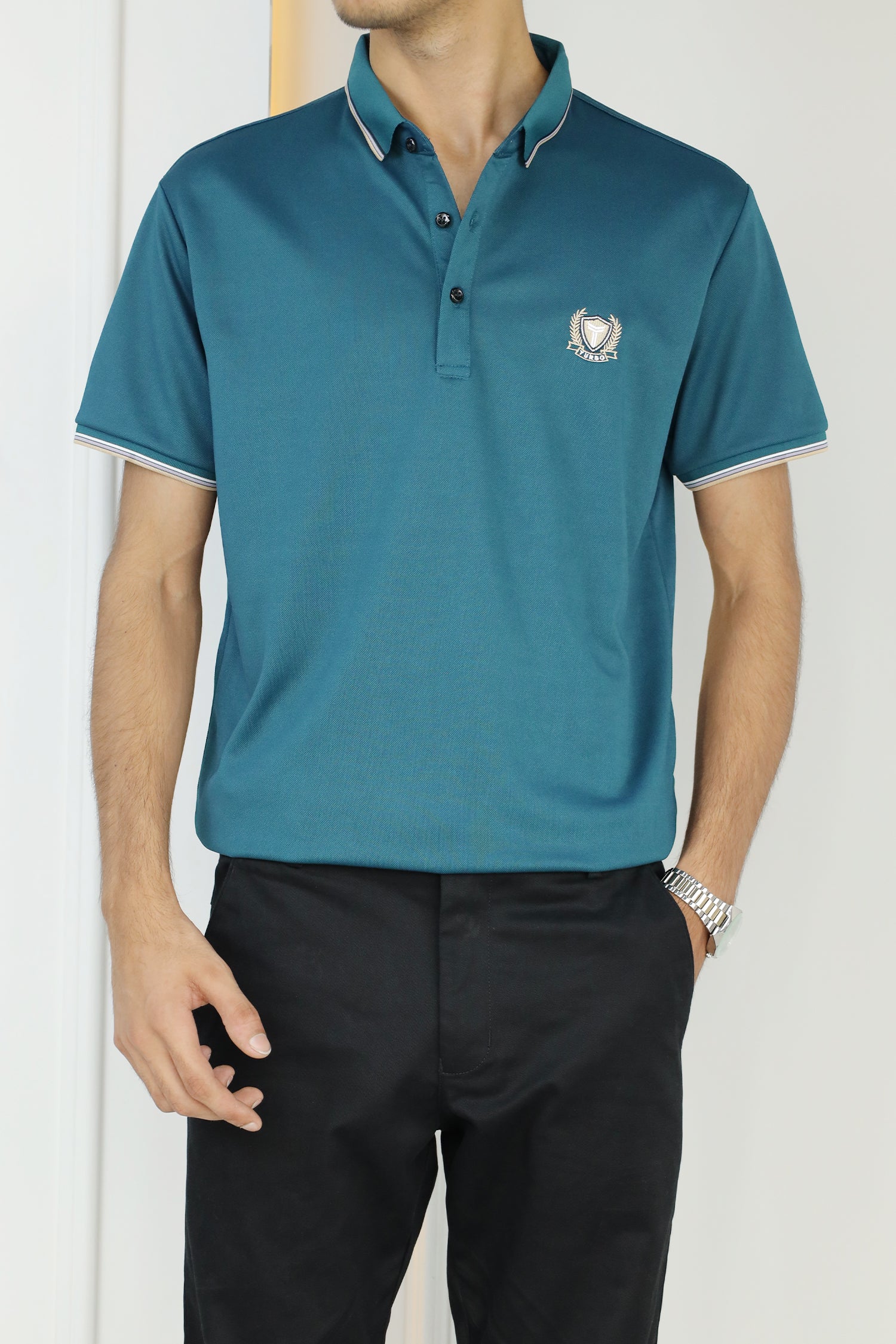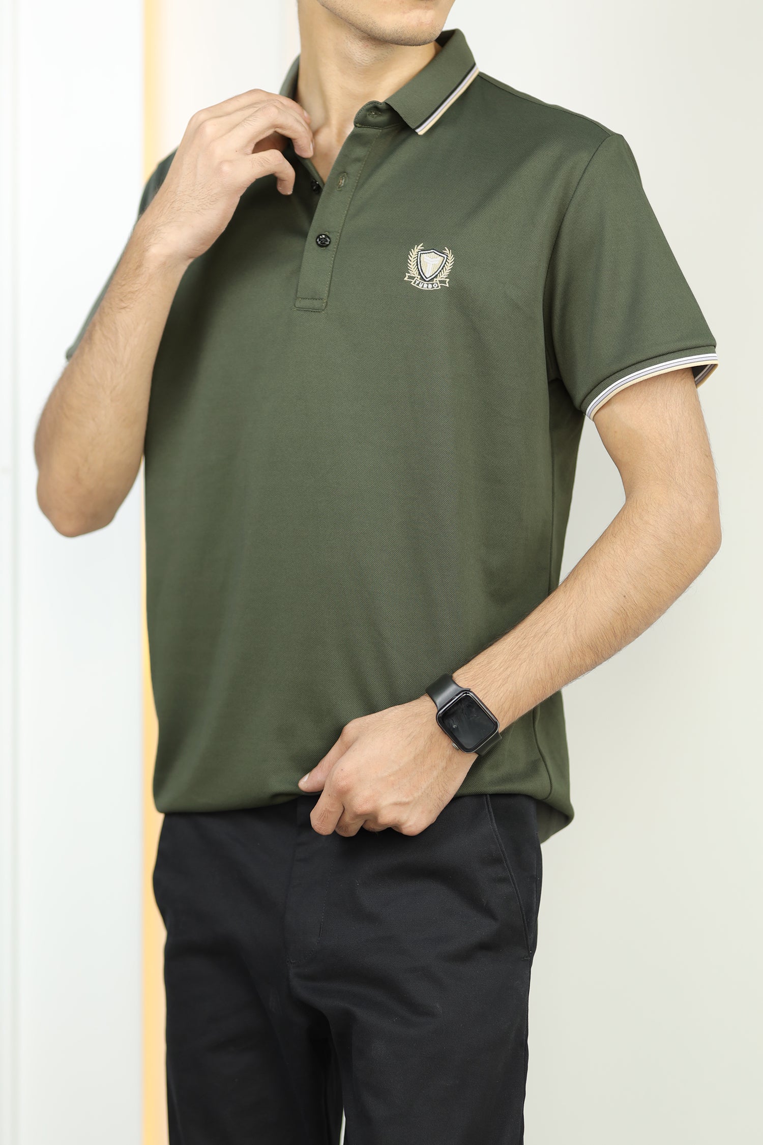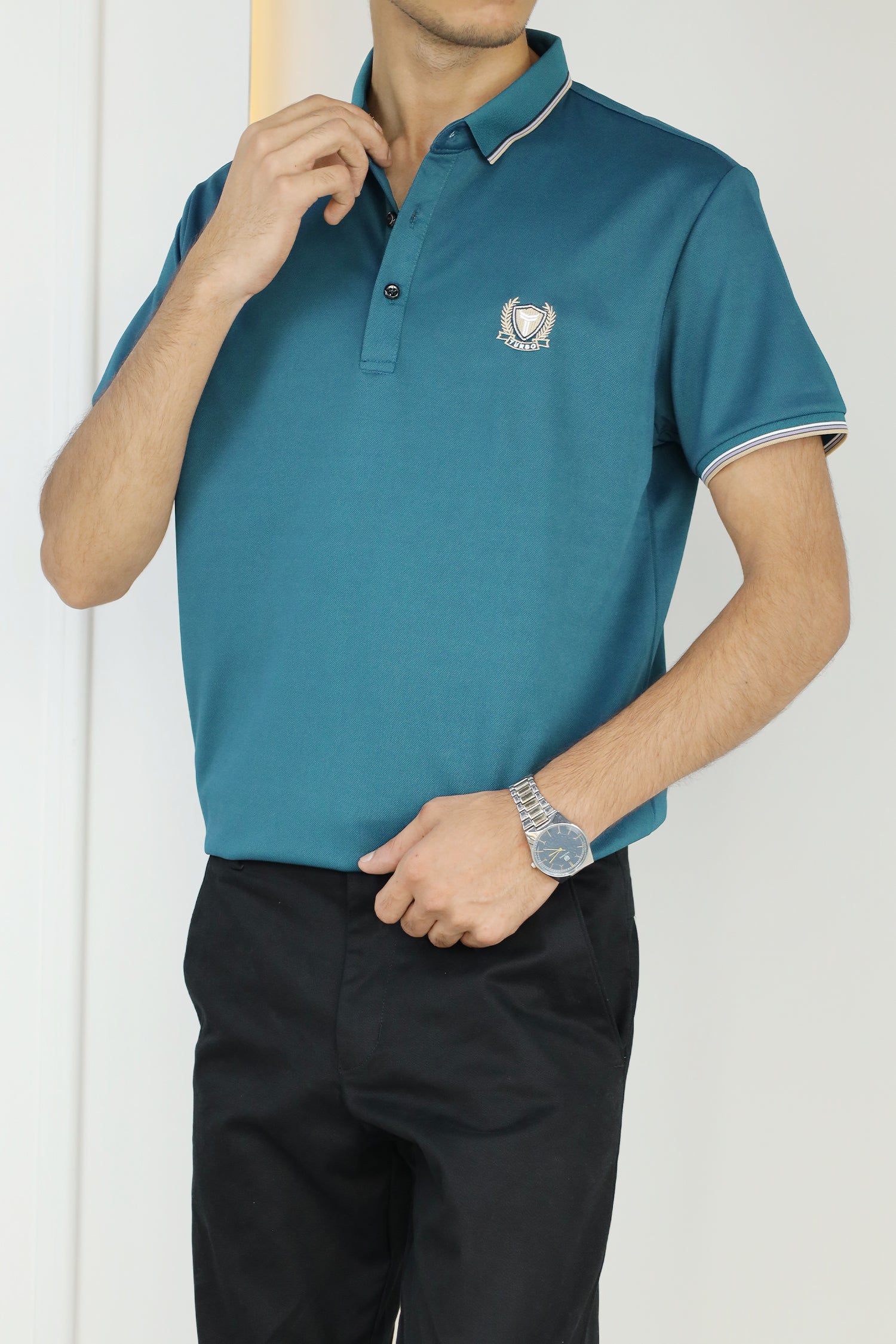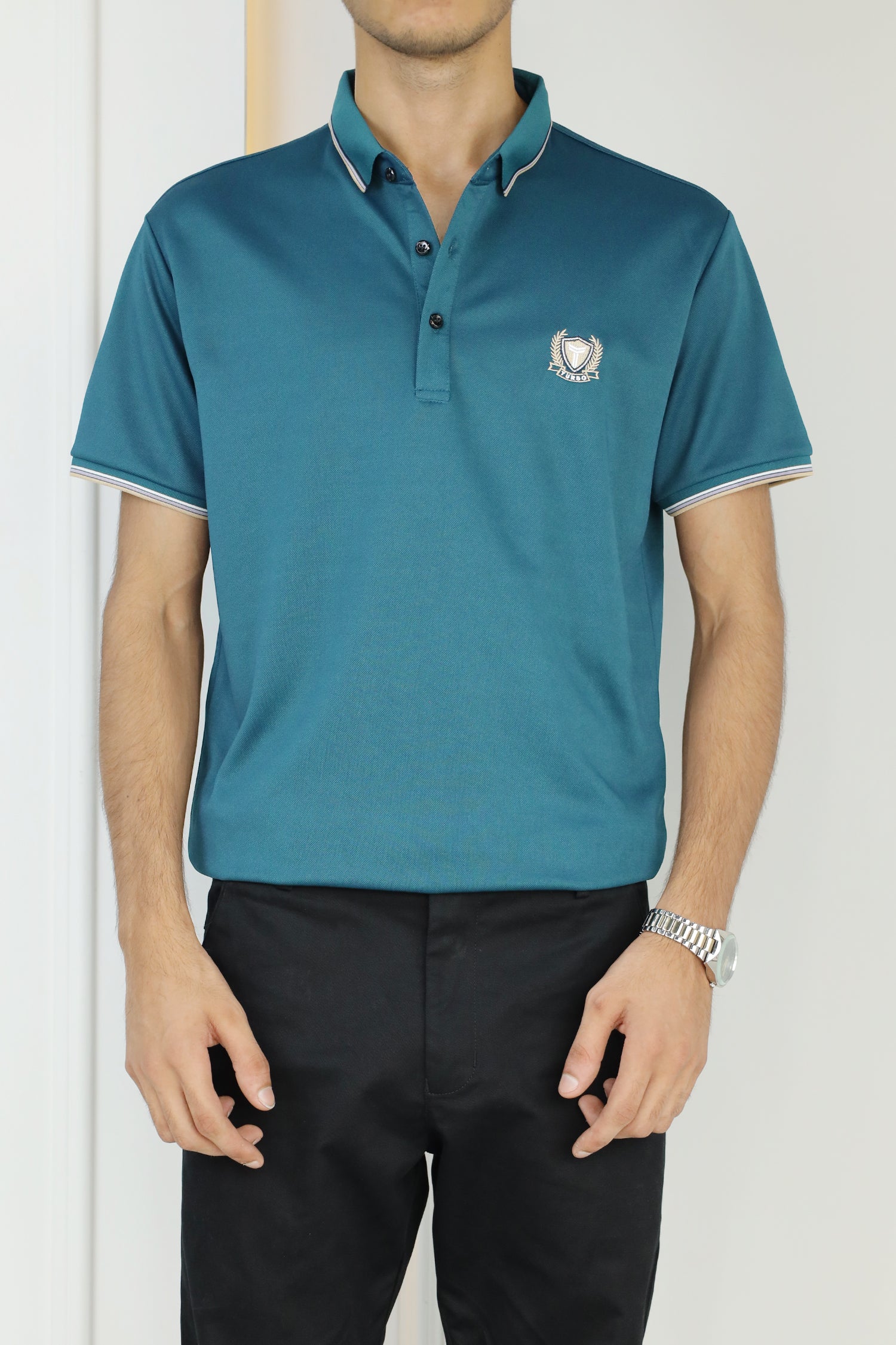 - This shirt boasts a Stretchable soft hand feel With Front Icon Embroidered Logo and half sleeves.