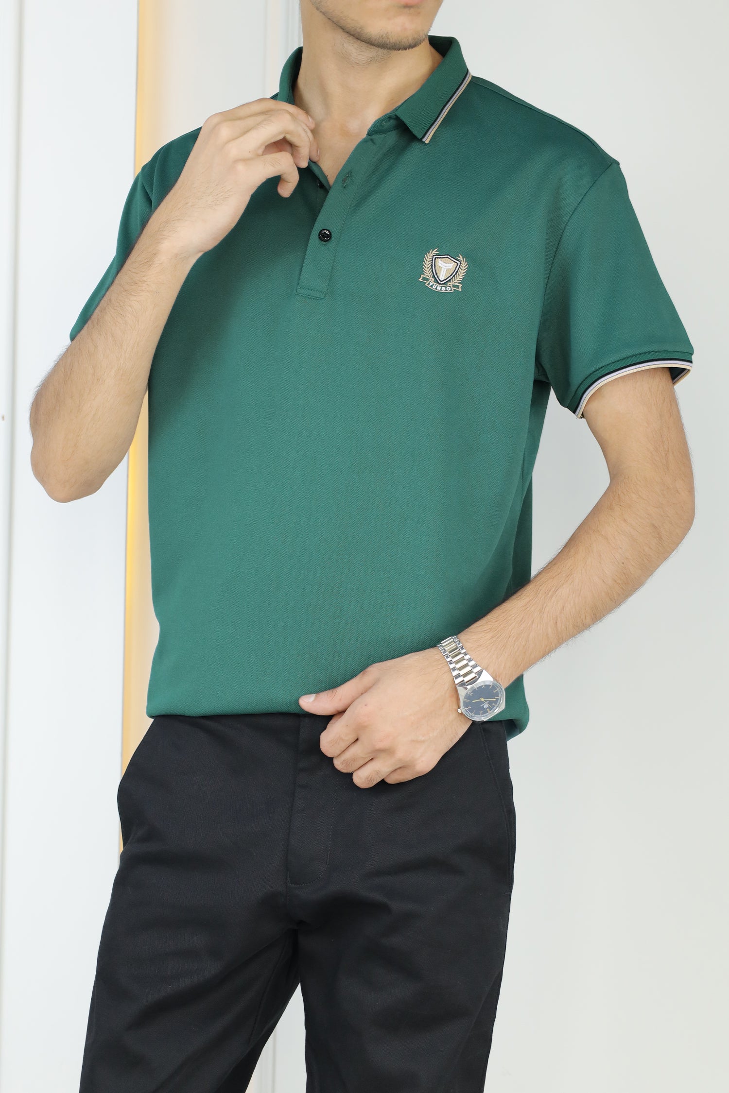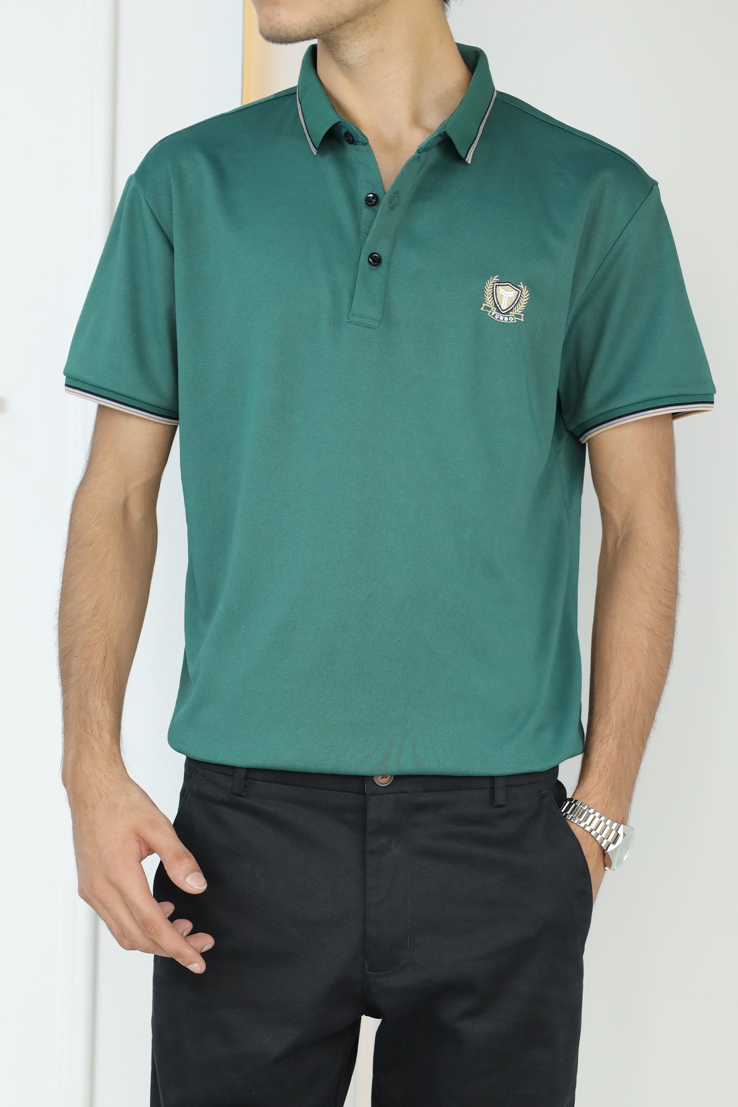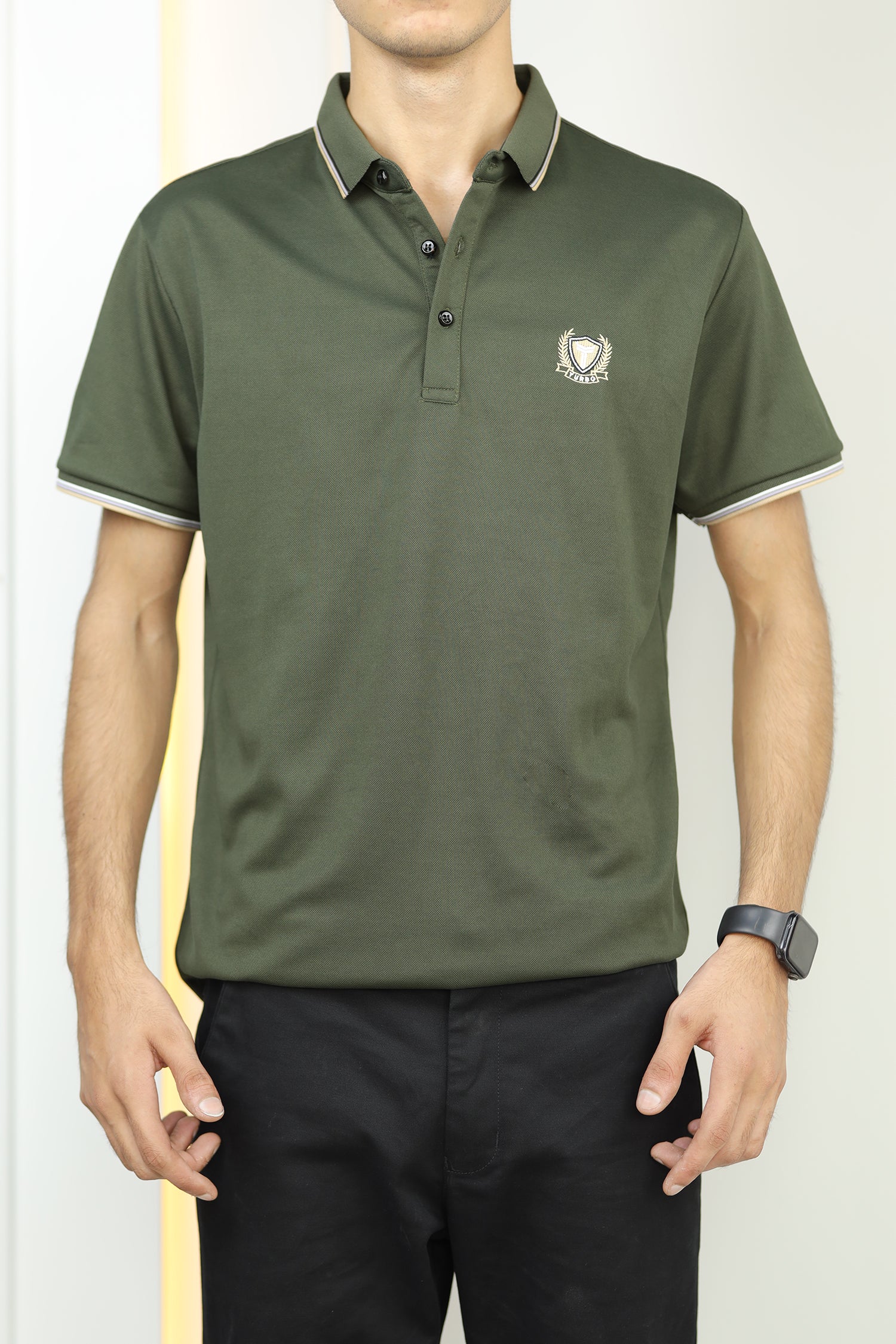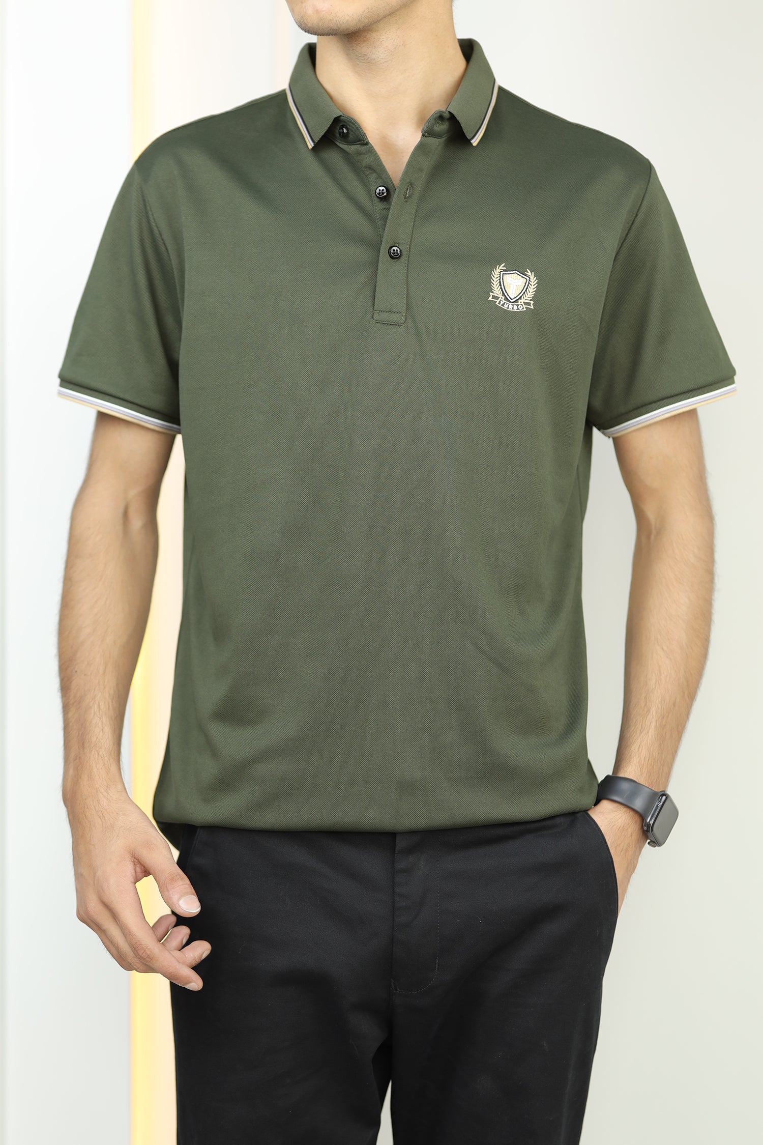 - This shirt boasts a Stretchable soft hand feel With Front Icon Embroidered Logo and half sleeves.