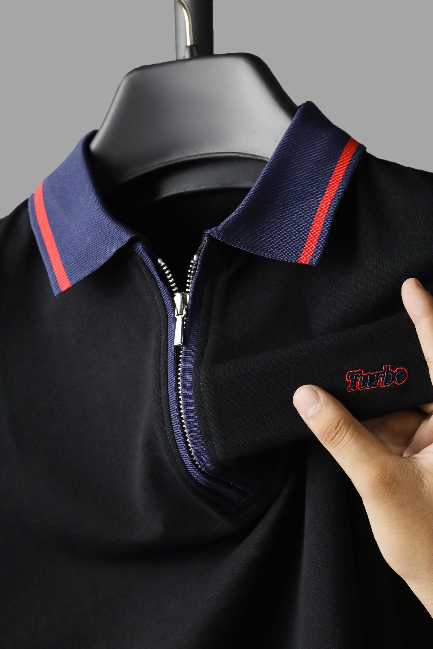 Turbo Record Zip Collar-Block Men's Polo Shirt In Black