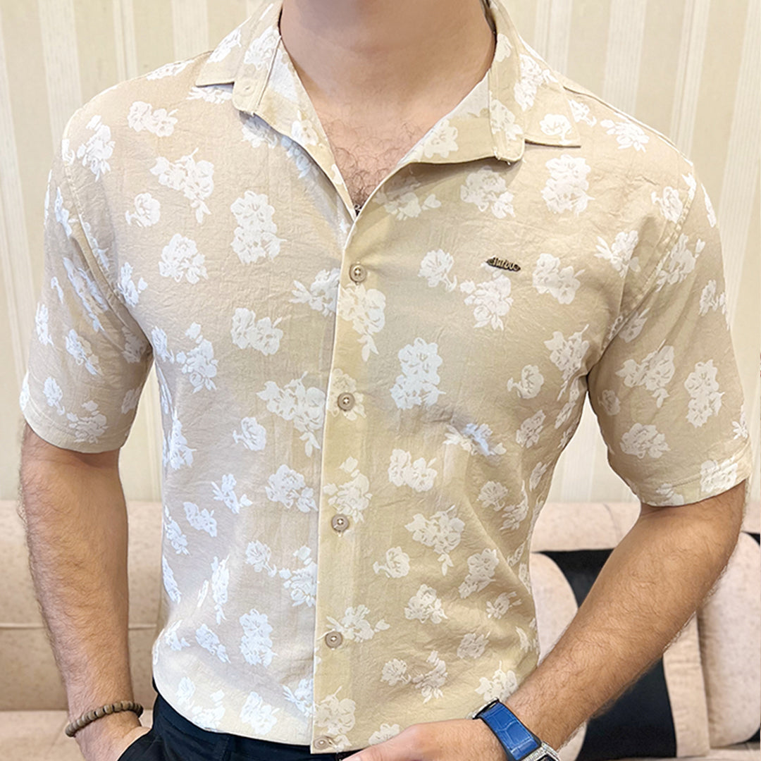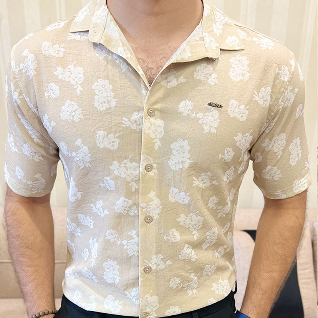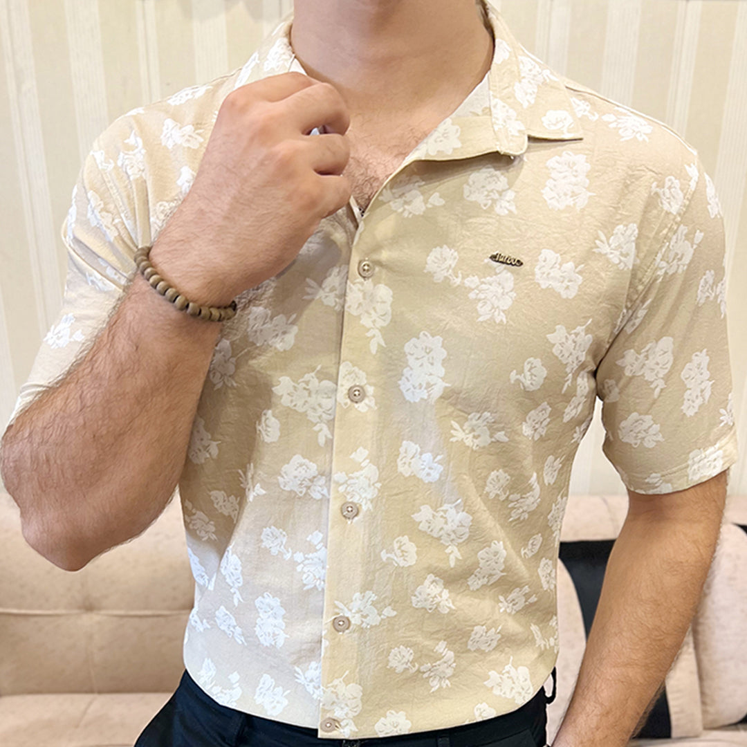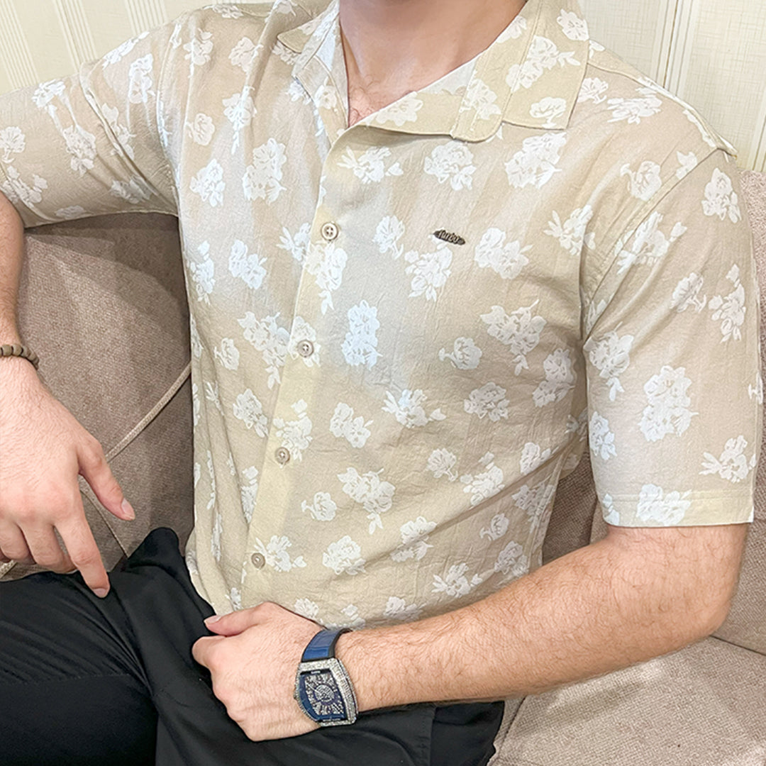 Turbo Rich Floral Printed Casual Shirt In Beige