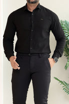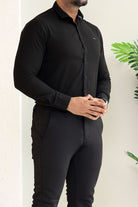 Turbo Self Lining Long Sleeve Cotton Casual Shirt In Black