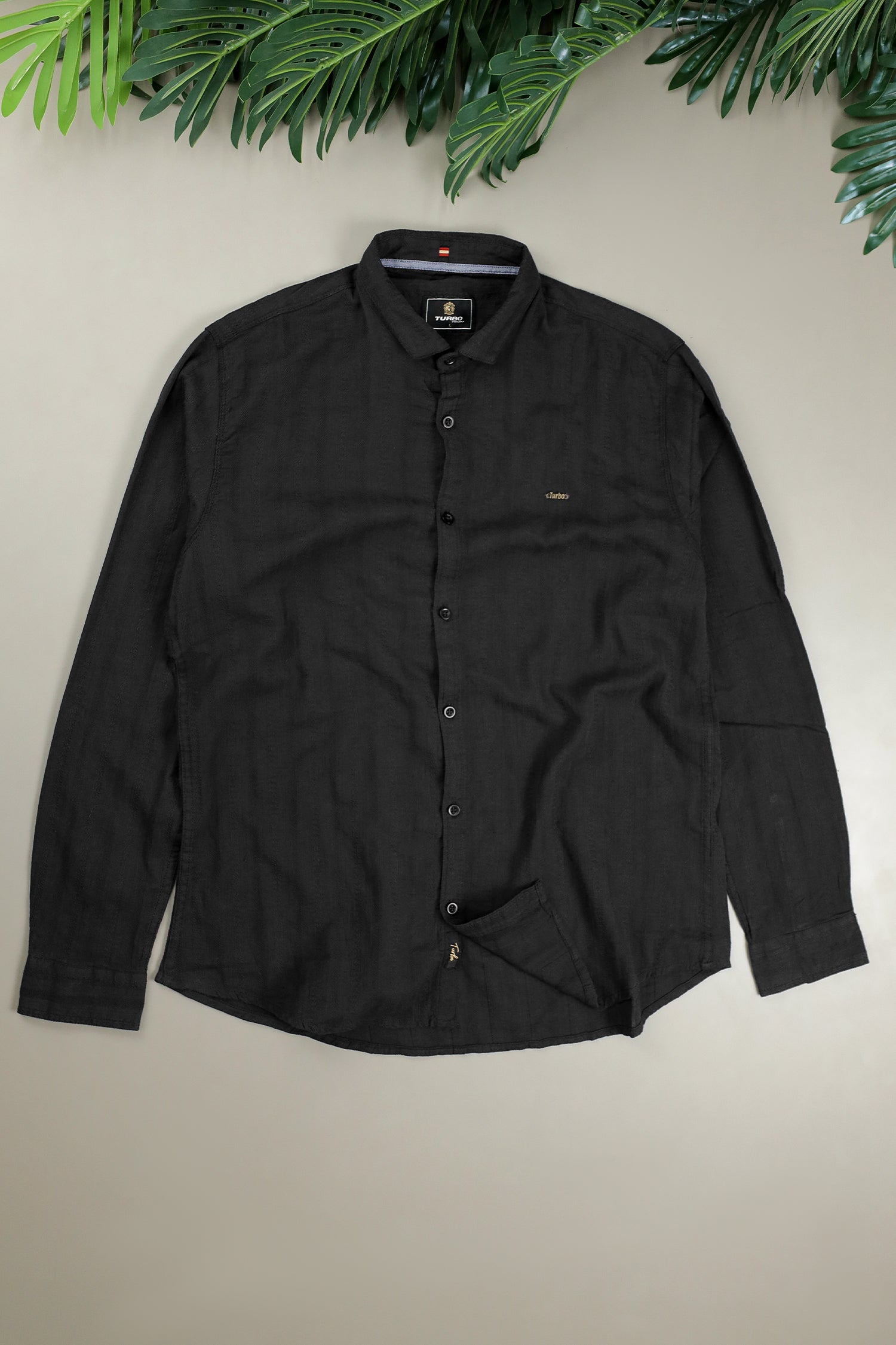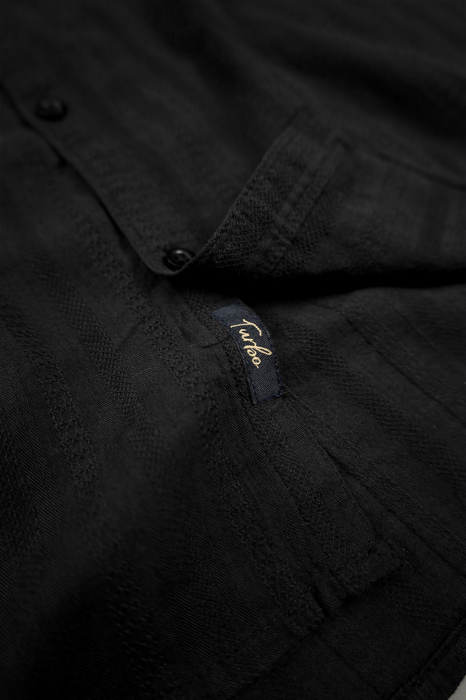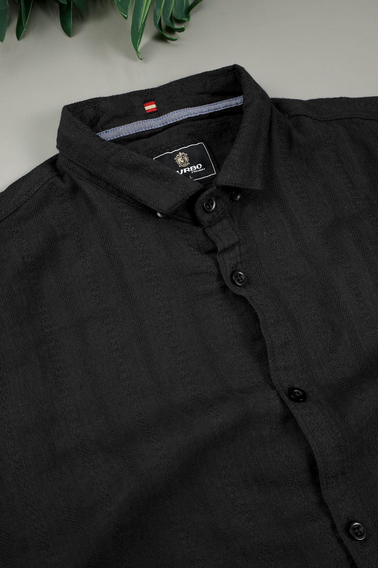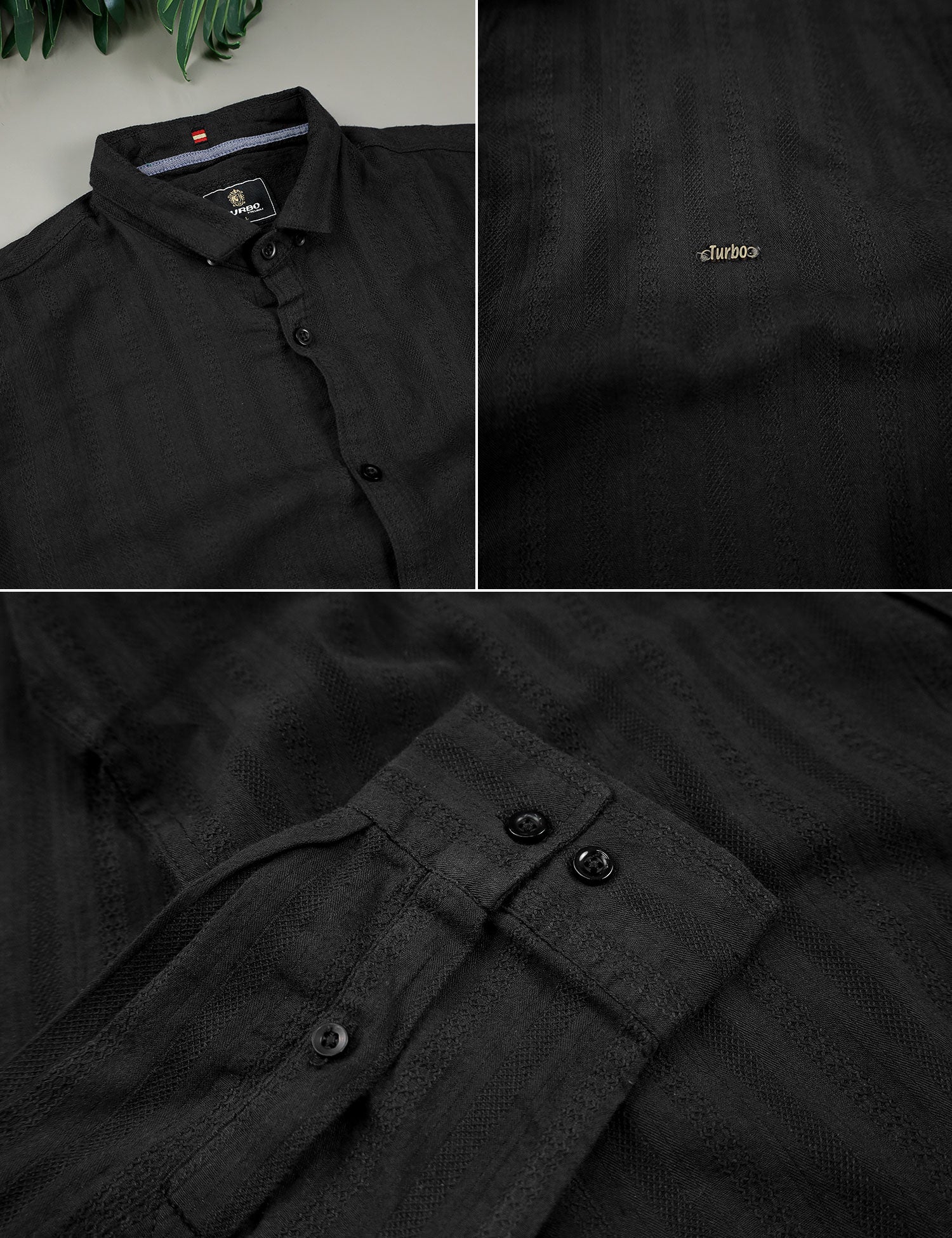 Turbo Self Stripe Motif Long Sleeve Cotton Casual Shirt In Black