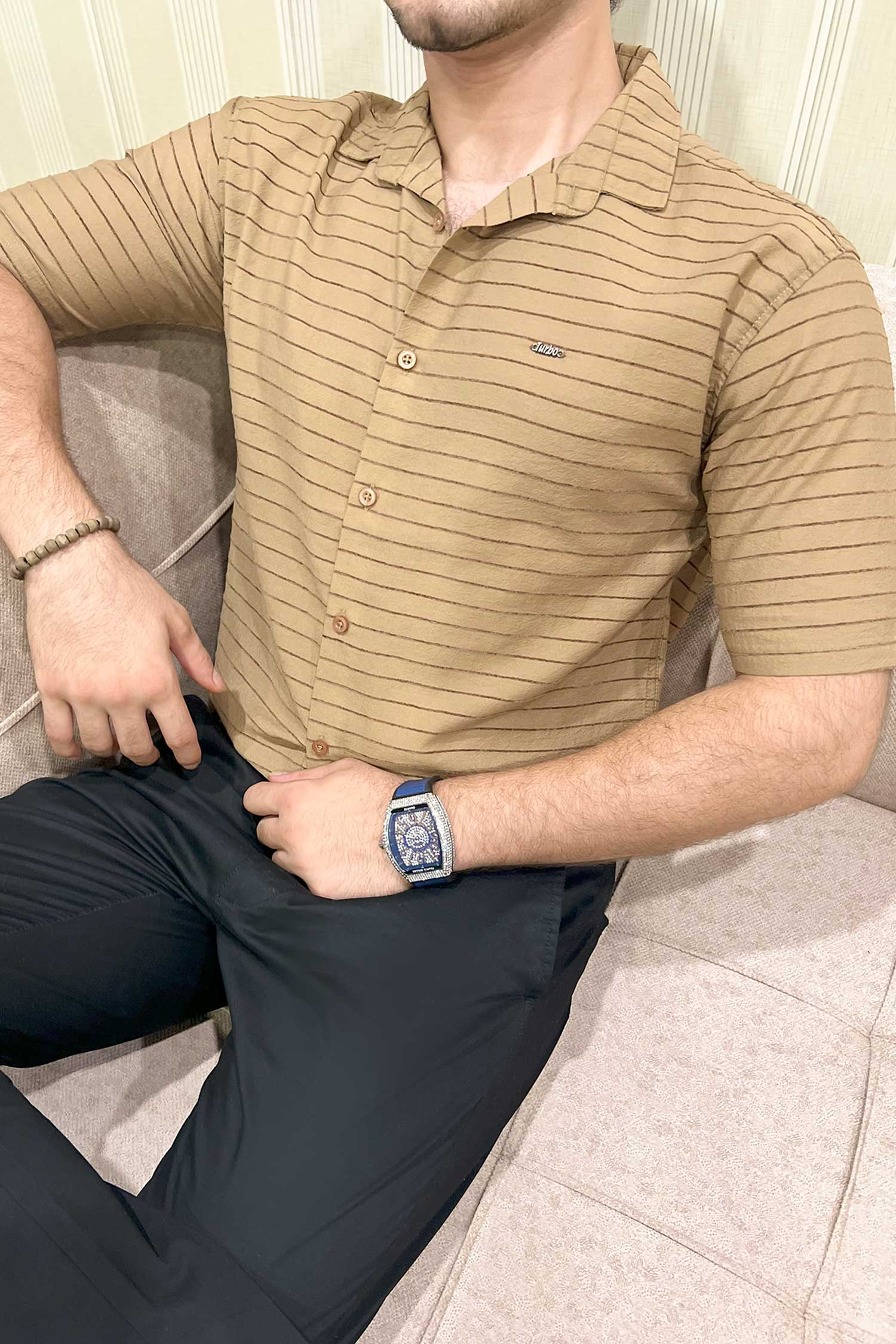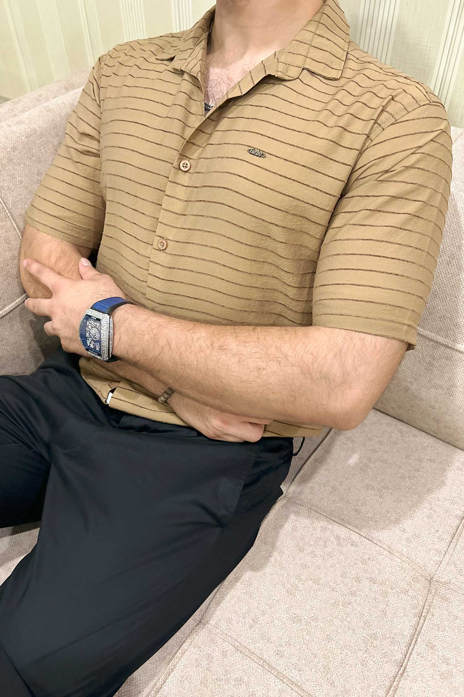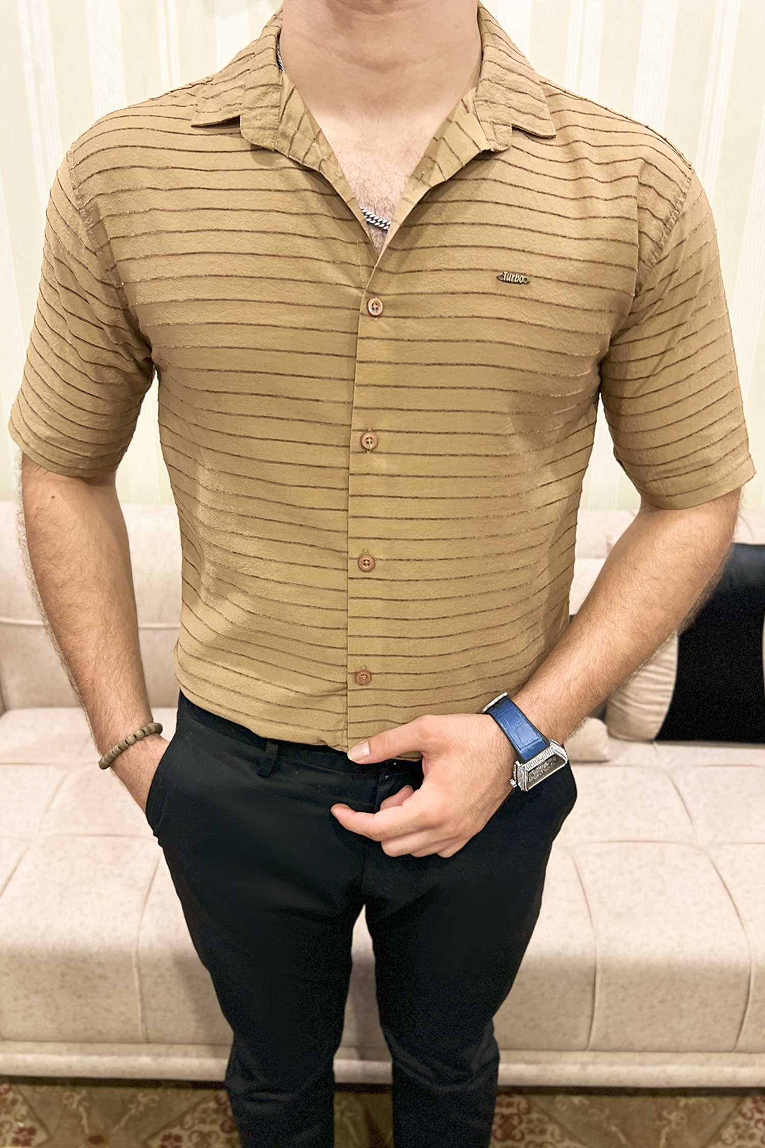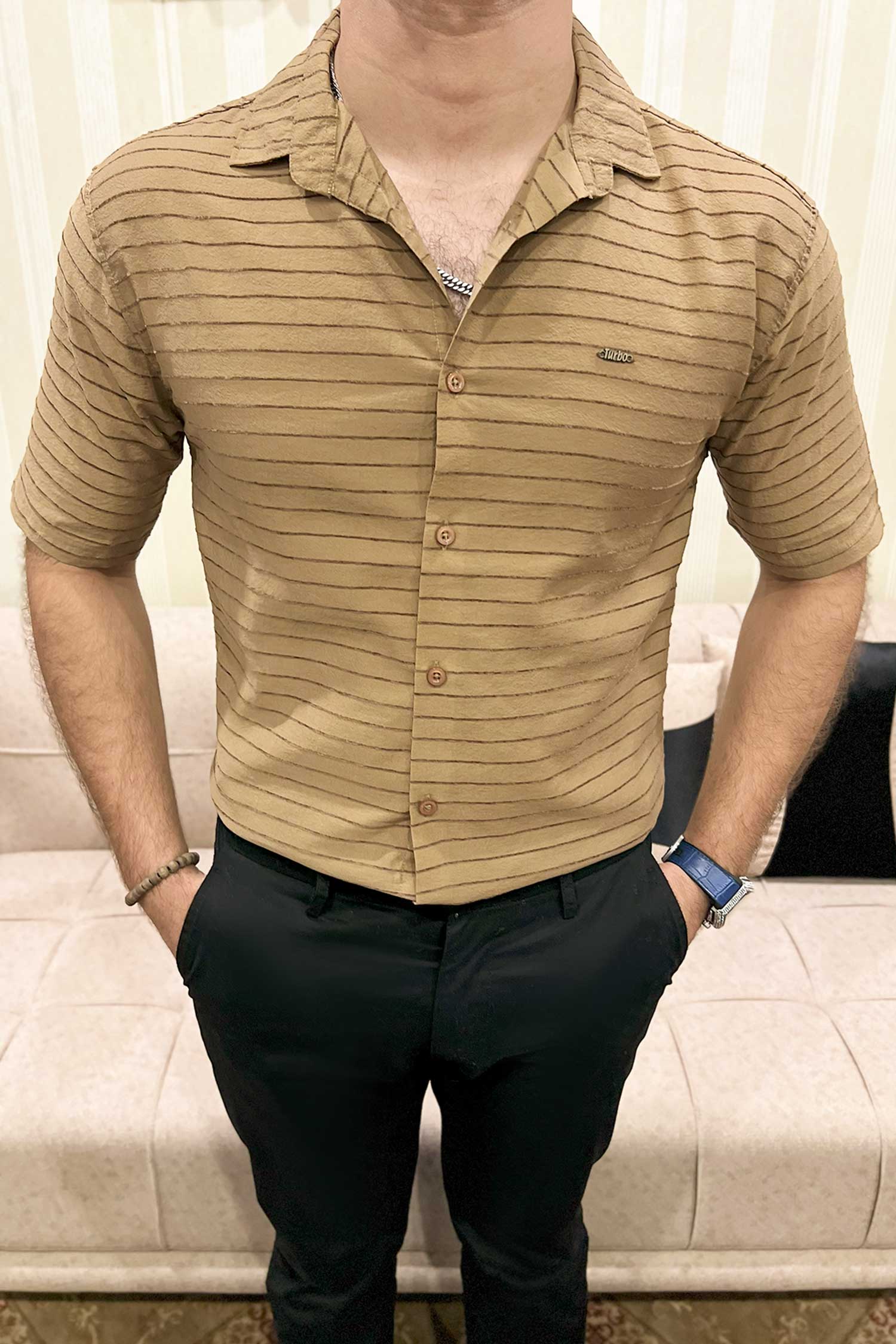 Turbo Snitch Striped Casual Shirt In Brown