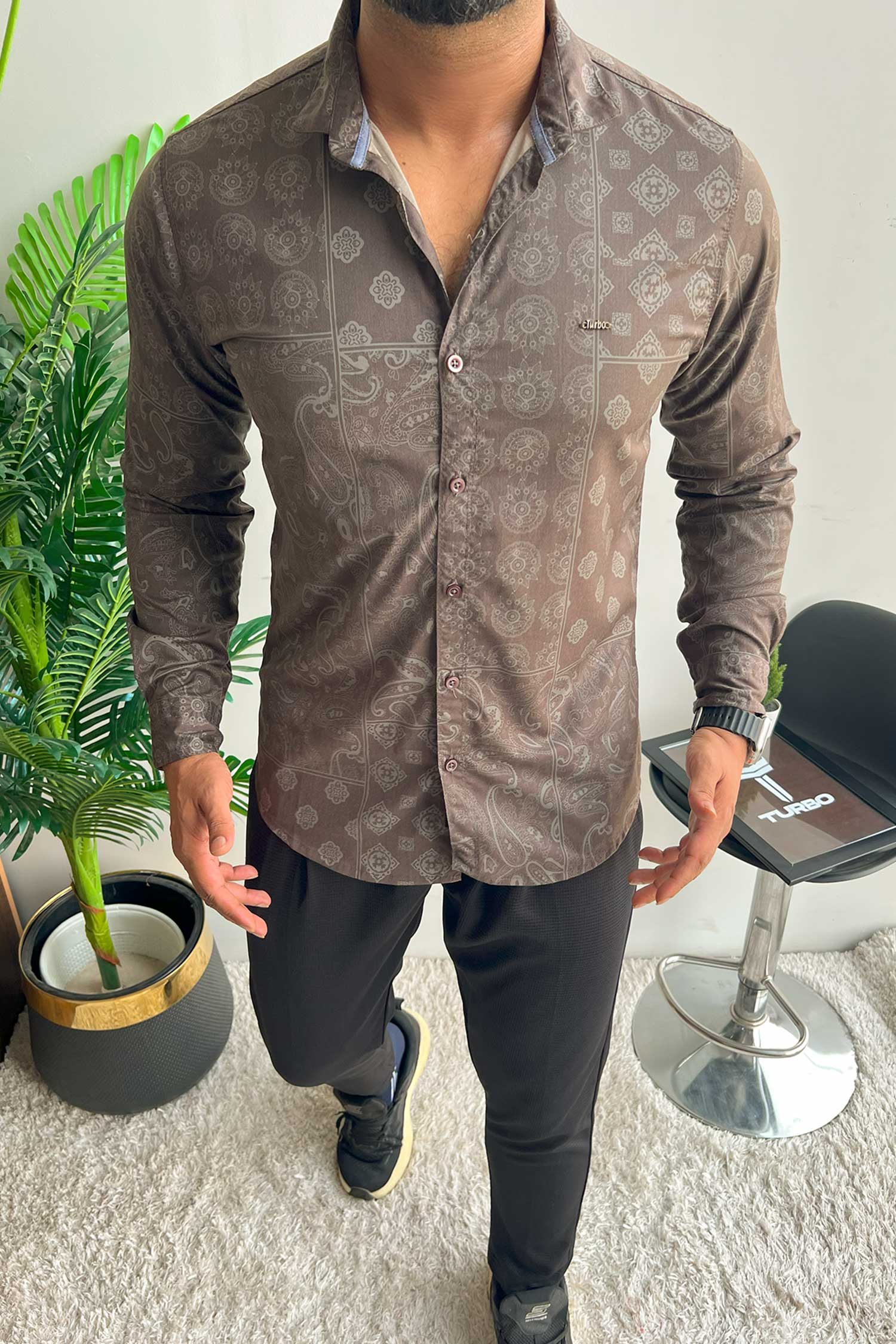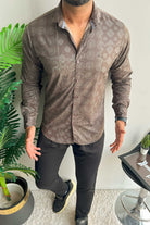 Turbo Splash Printed Long Sleeve Cotton Casual Shirt In Charcoal Grey