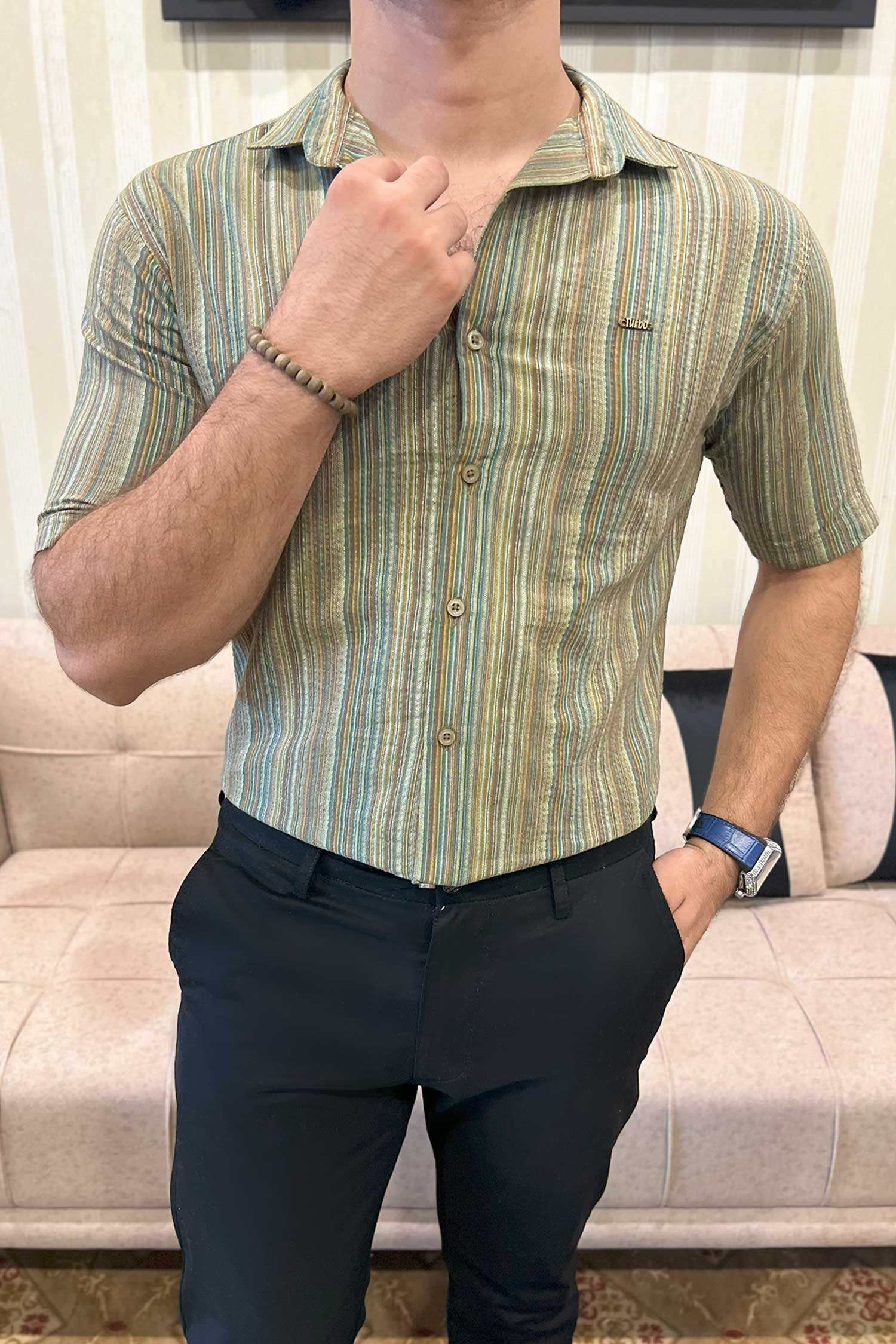 Turbo Spring Edit Textured Casual Shirt In Green