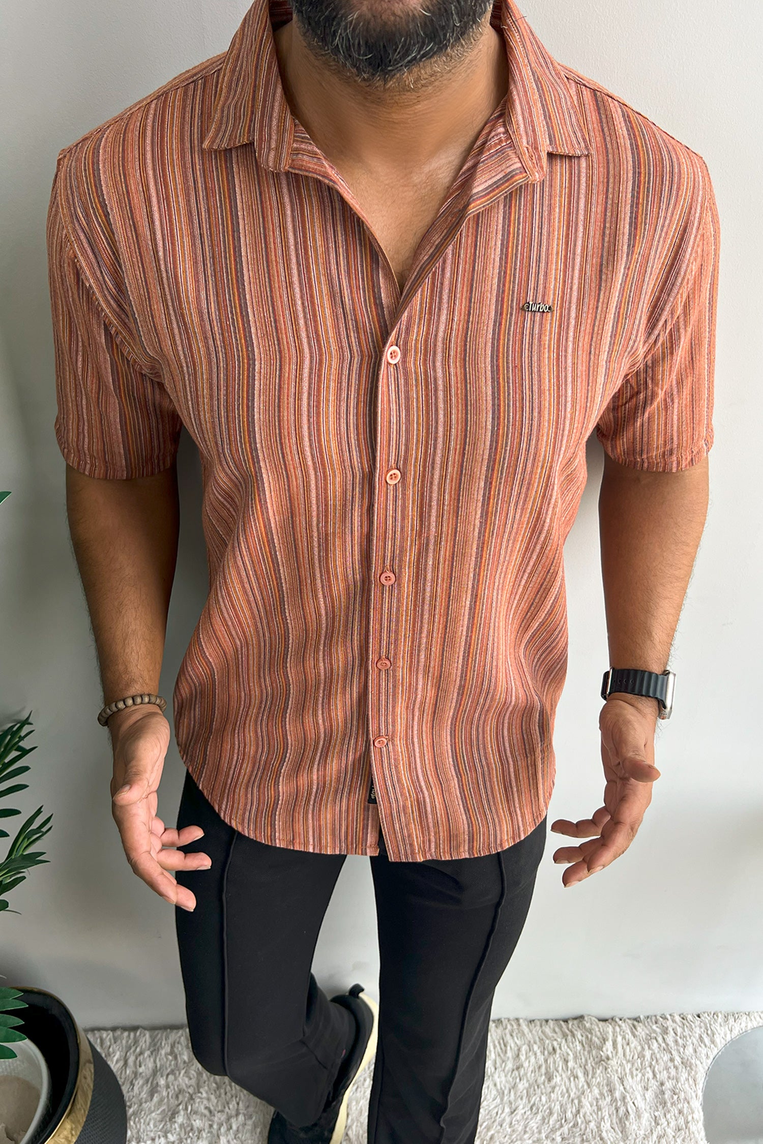 Turbo Spring Edit Textured Casual Shirt In Red Brick
