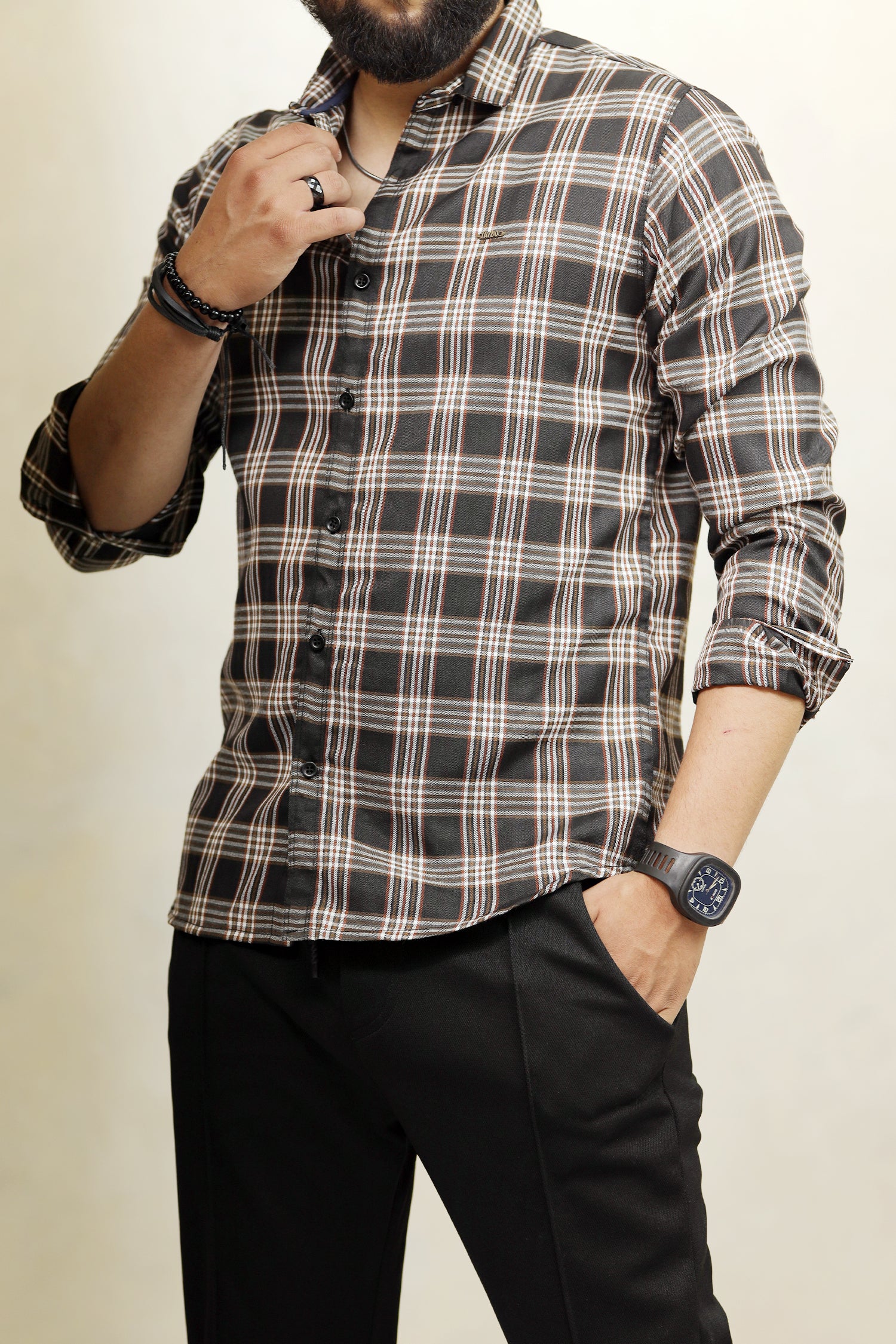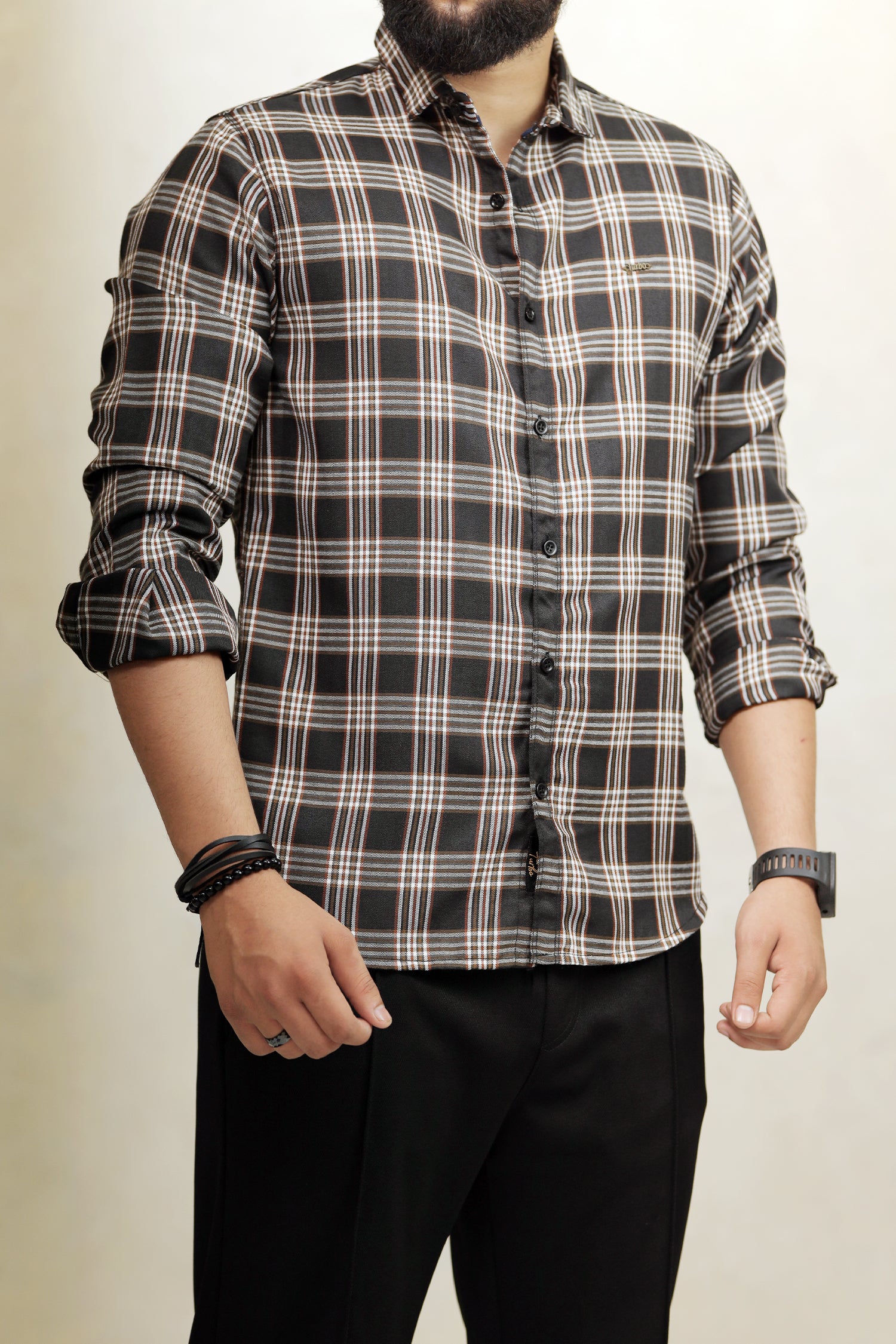 Turbo Tattersall Checkered Long Sleeve Cotton Casual Shirt In Black