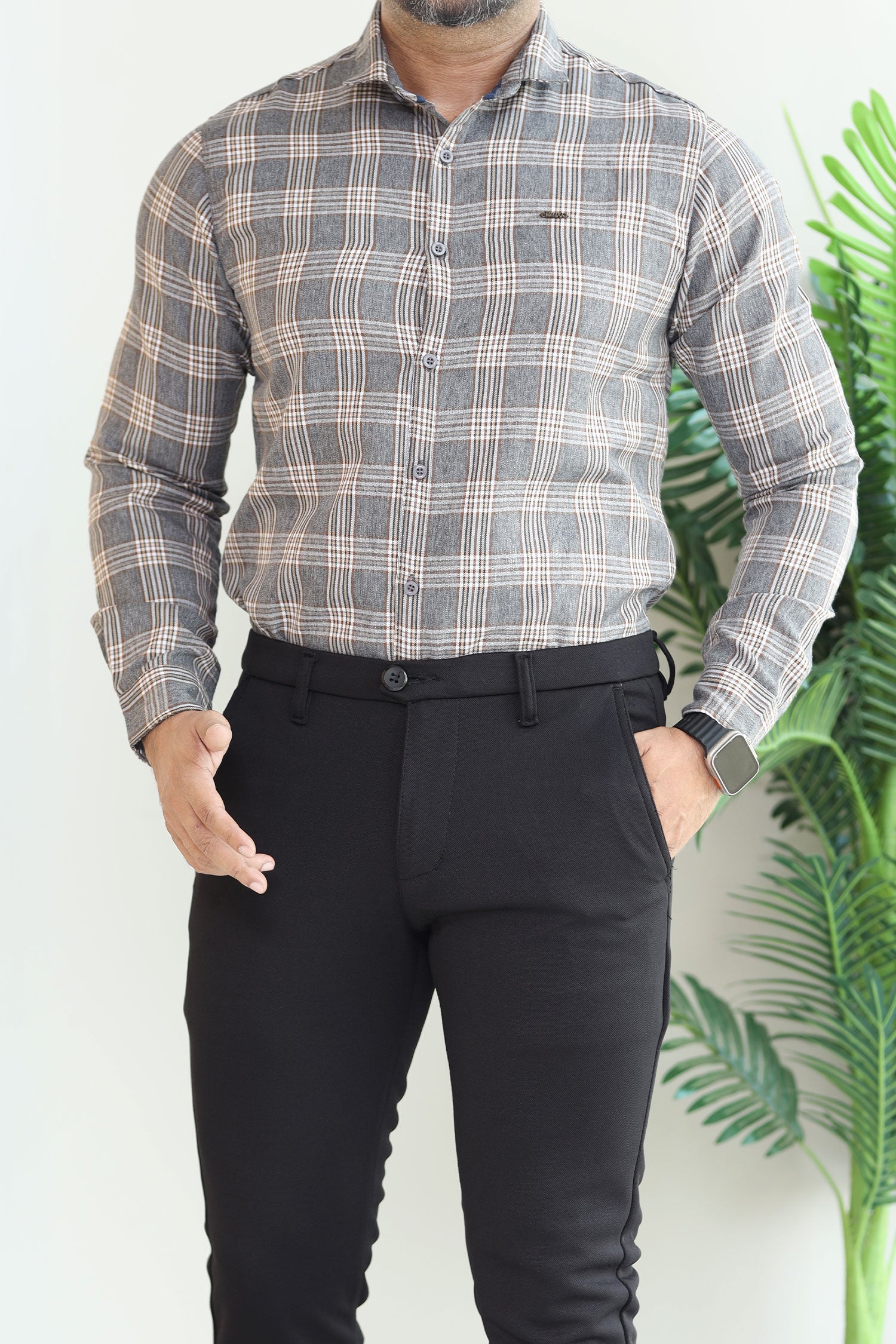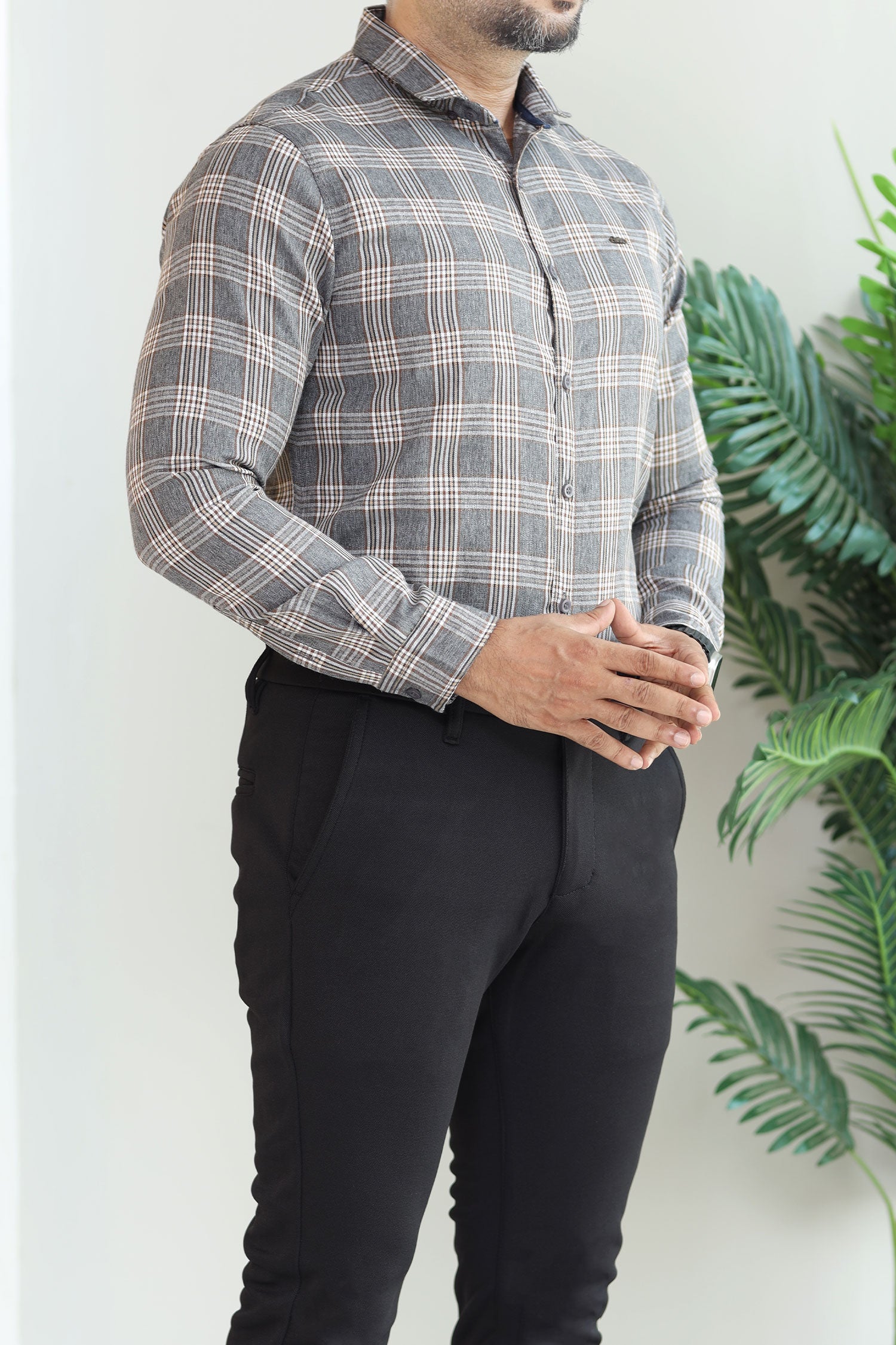 Turbo Tattersall Checkered Long Sleeve Cotton Casual Shirt In Grey