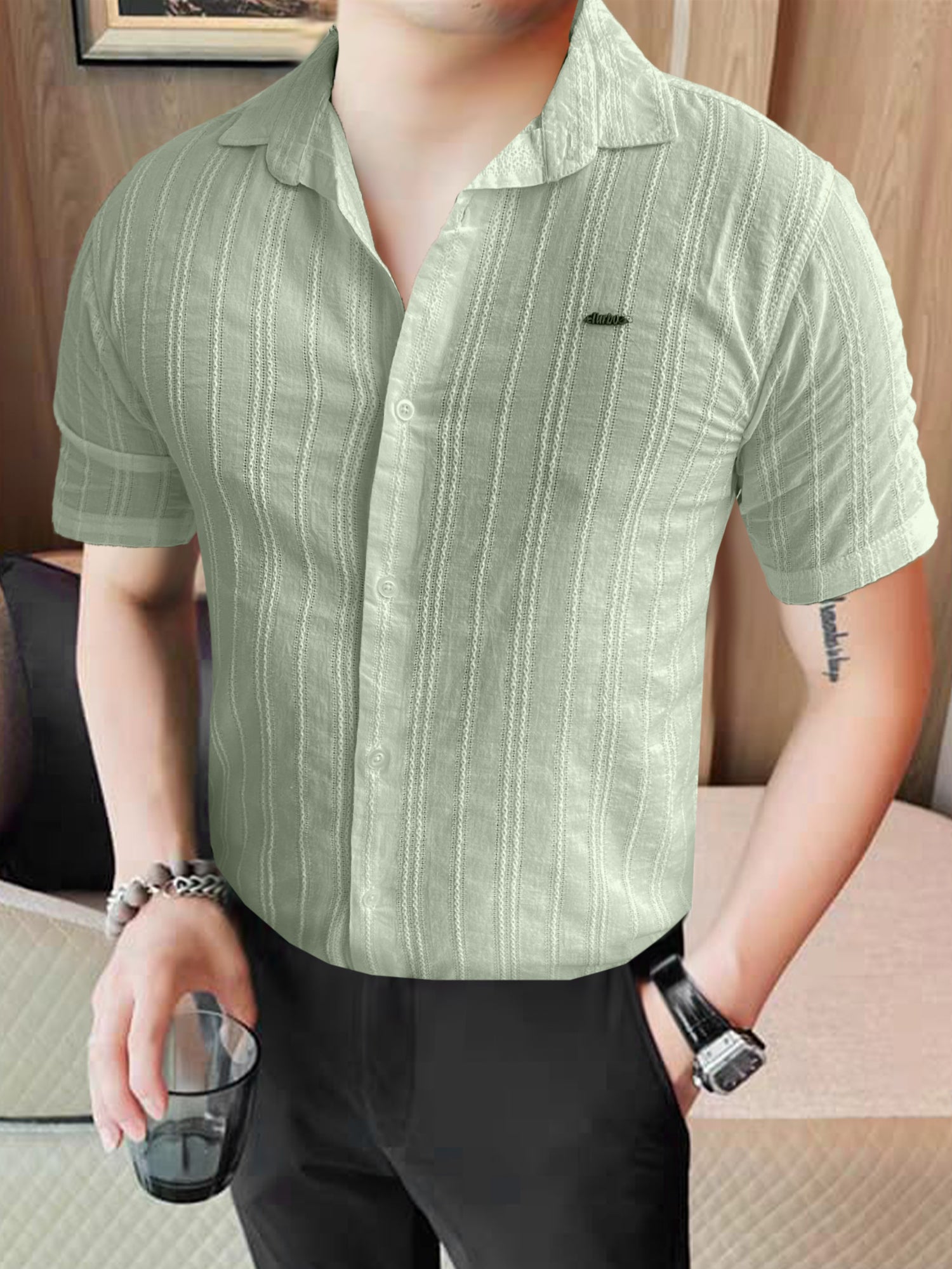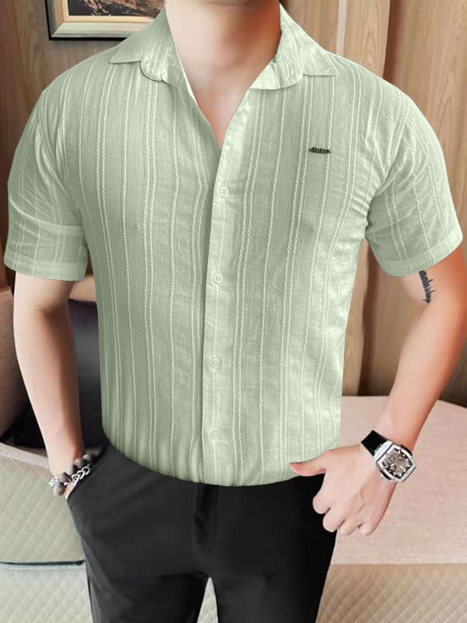 Turbo Textured Champ Casual Shirt In Mint Green
