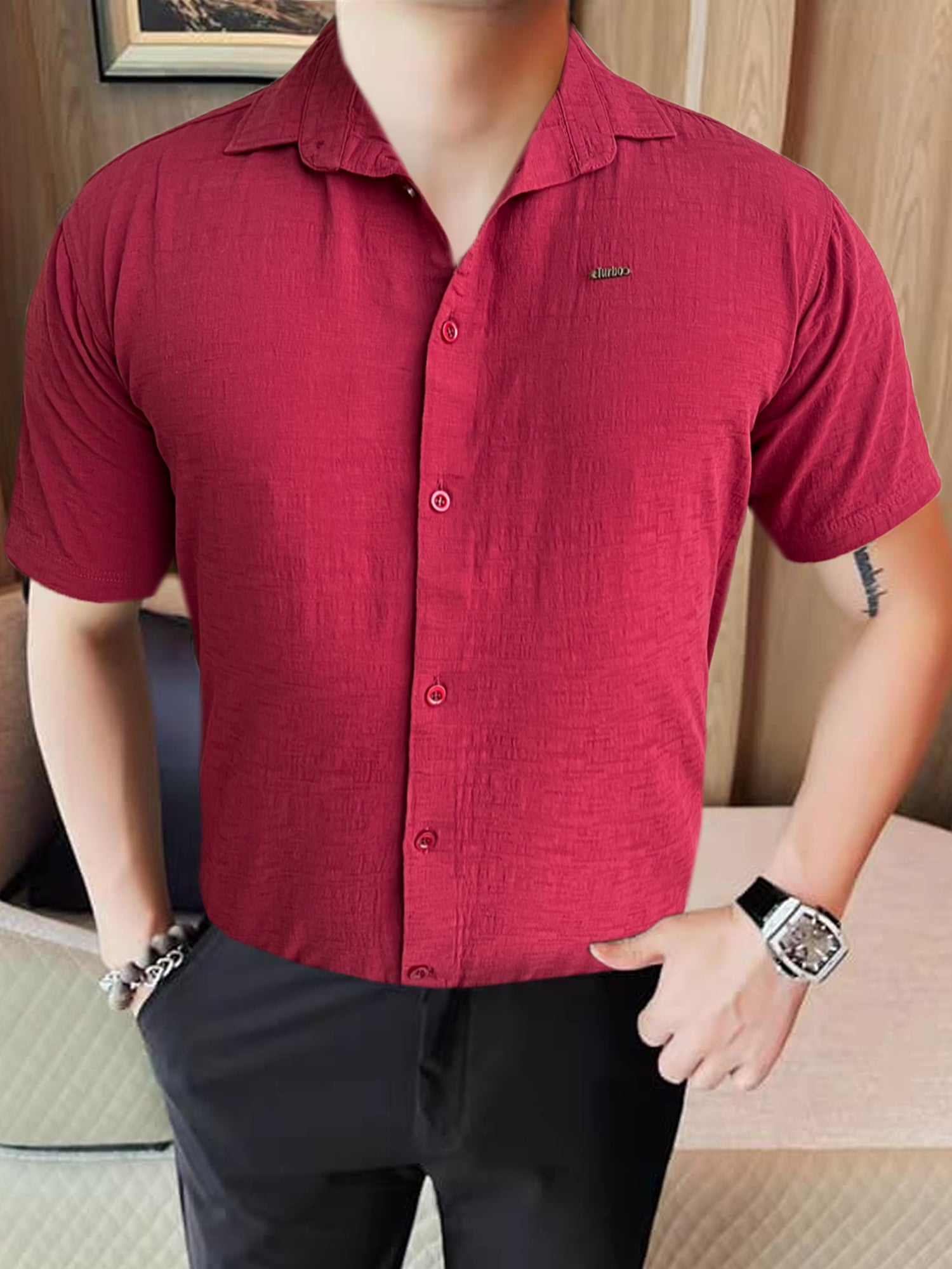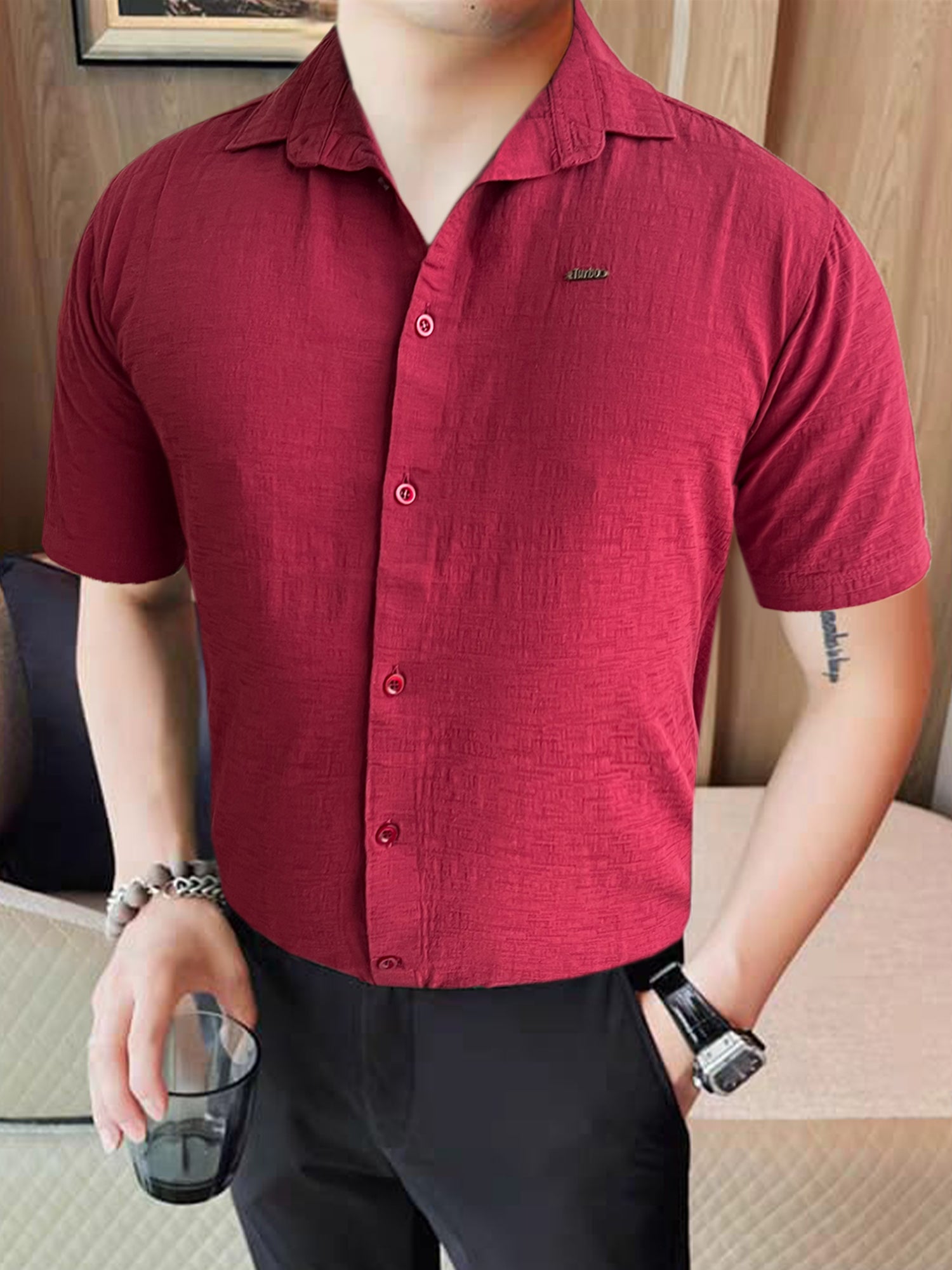 Turbo Textured Relaxed Fit Casual Shirt In Maroon