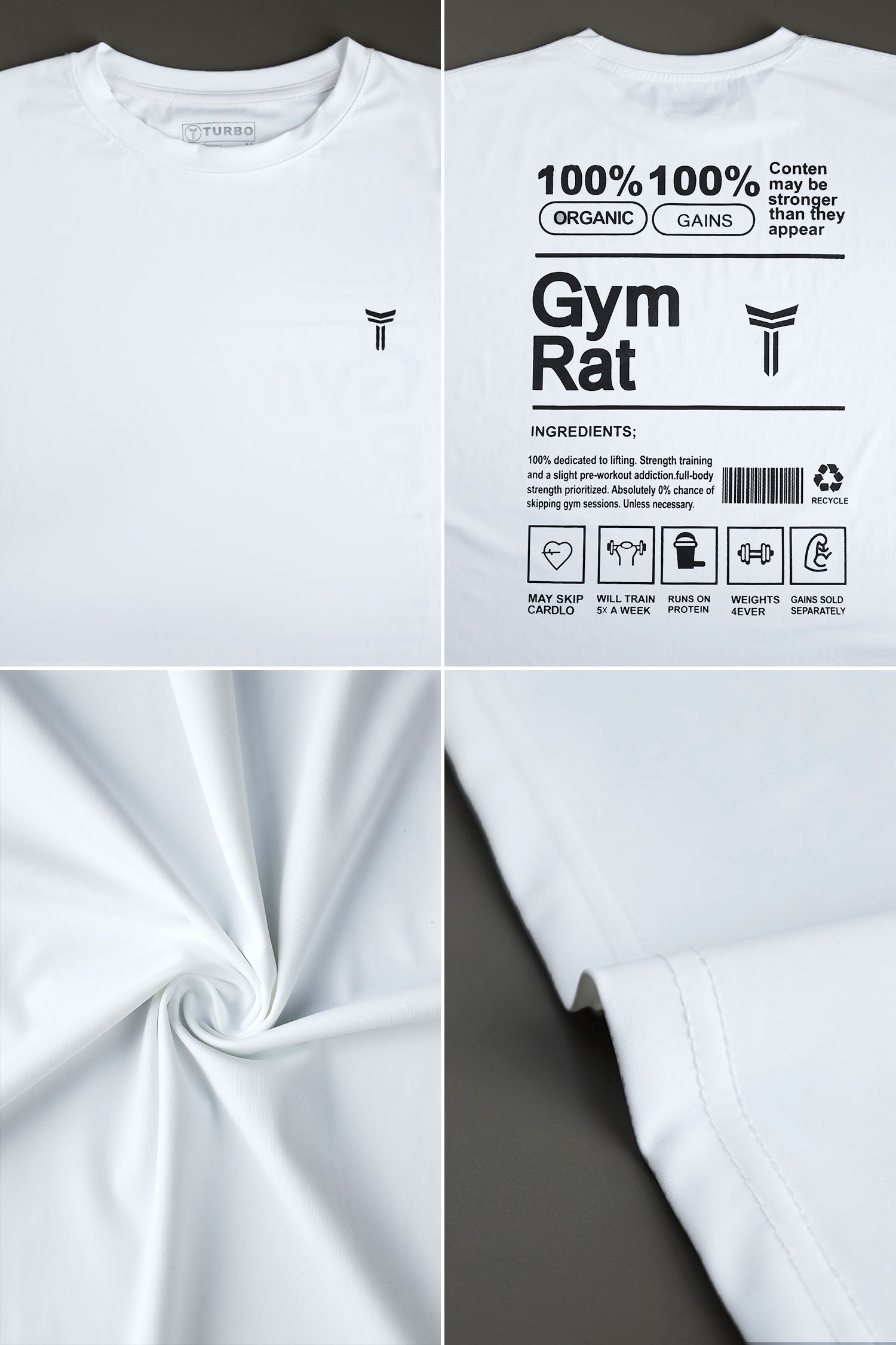 Turbo 'The Gymrat Manifesto' Graphic Performance Dry-Fit Tee In White