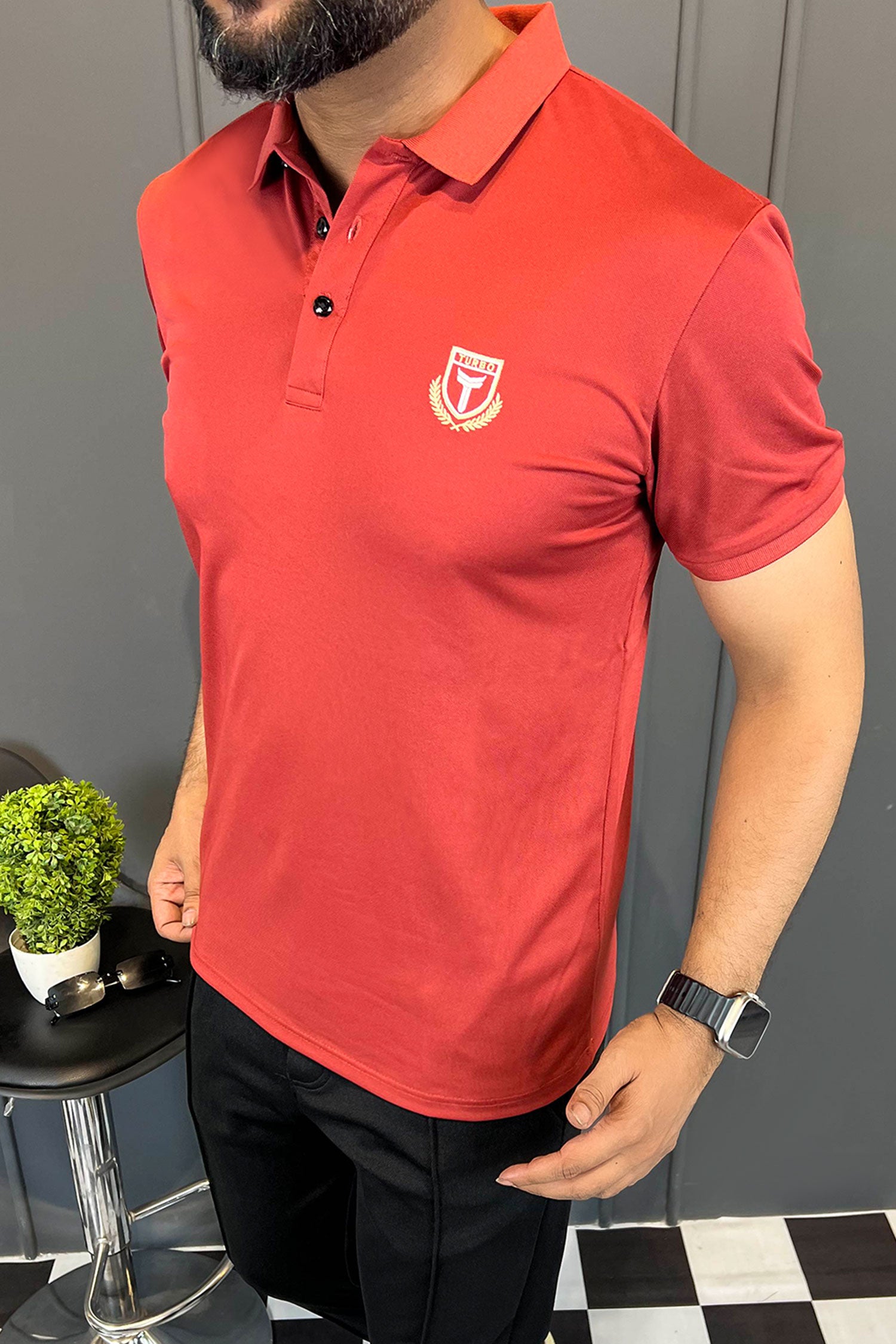 - This shirt boasts a Stretchable soft hand feel With Front Icon Embroidered Logo and half sleeves.