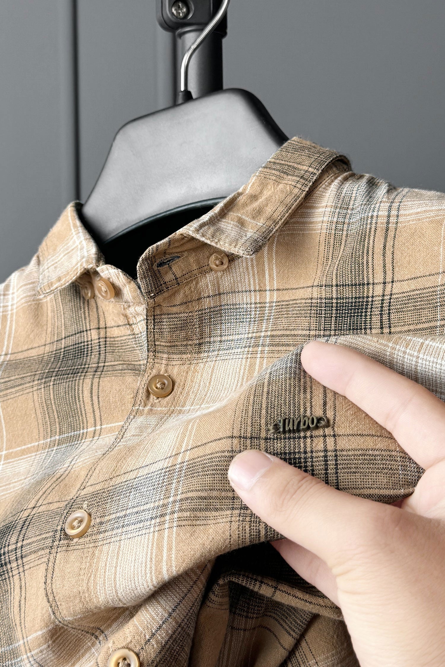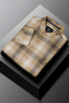 Turbo Tribe Premium Flannel Long Sleeve Cotton Casual Shirt In Light Camel