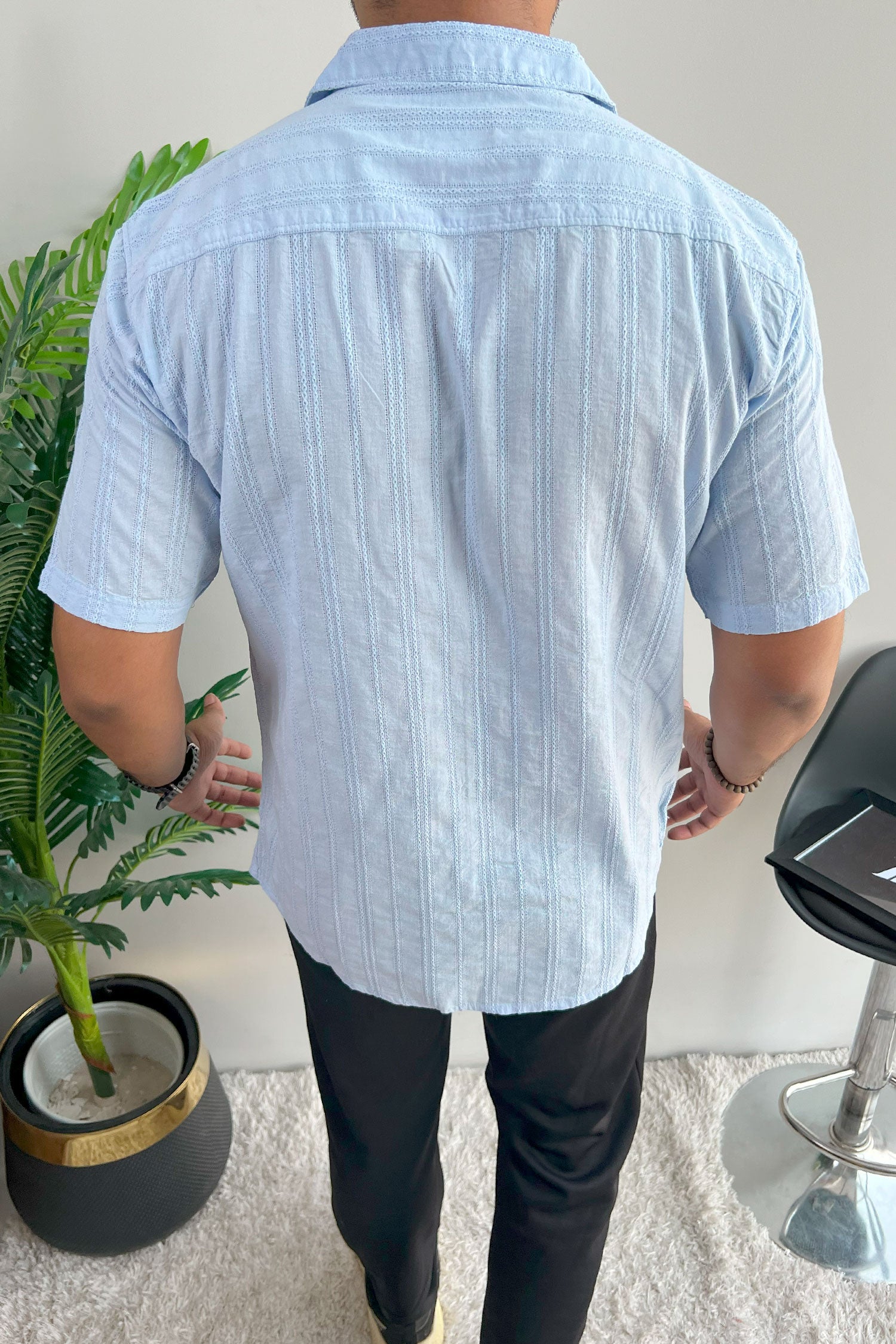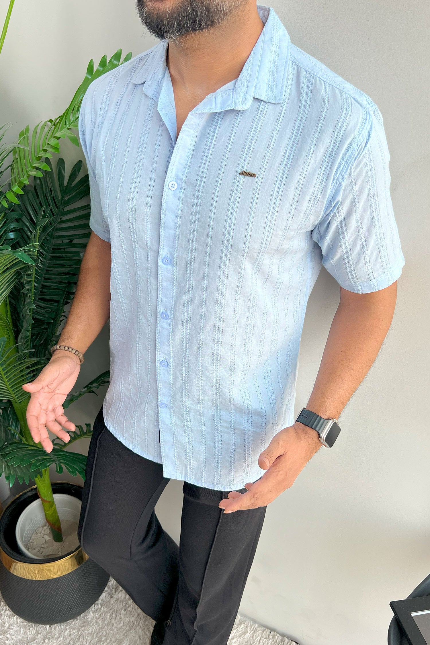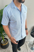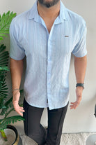 Turbo Wave Texture Crochet Casual Shirt In Sky Blue