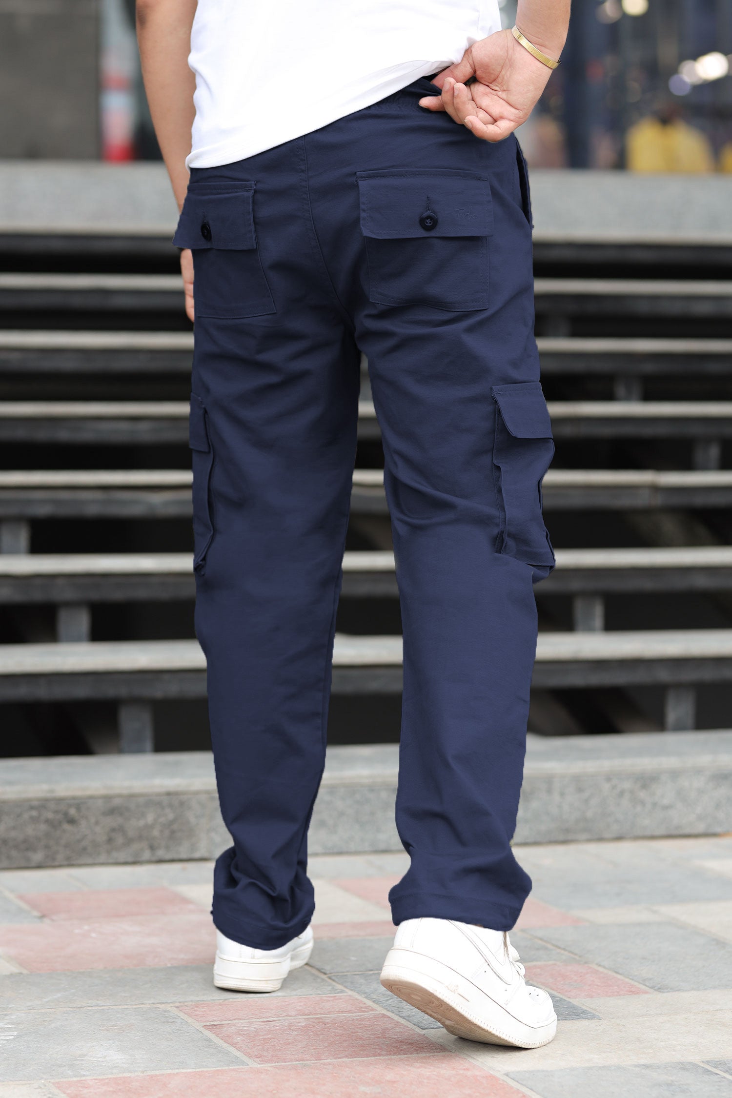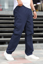 Turbo's 6 Pockets Loose Bottom Cargo Trouser In Navy Blue